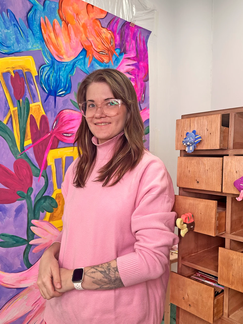 Настя Дяченко — современная художница. В работах исследует внутренние запреты, сценарии и иллюзию свободы, соединяя личную память и яркий визуальный язык. Работает с гуашью, маслом, масляной пастелью, акрилом, полимерной глиной и керамикой.