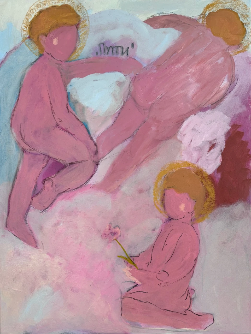 Картина «Путти» обращается к мотиву детской чистоты и наивности, переосмысленному через оптику художницы. Образ лишён классической идилличности и воспринимается как эмоциональный символ — состояние лёгкости, уязвимости и доверия миру.