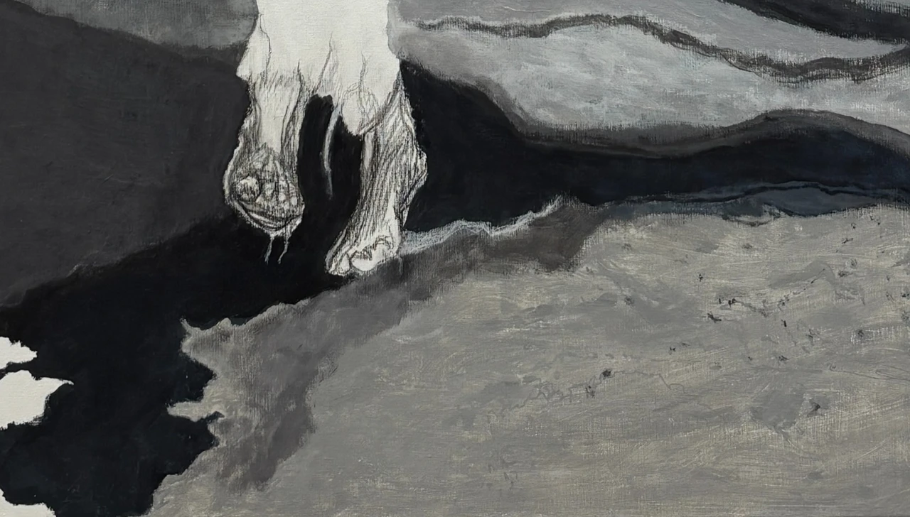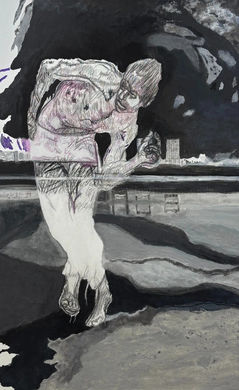 Тёплый январь. Пристань Речного вокзала. Знакомый пейзаж, соединяющий в себе канал и противоположную сторону с высотками. При всей обыденности увиденного возникает непривычное ощущение: во многих местах стаял лёд, и образовались серо-чёрные проталины, в которых отражаются дома. Монохромная тональность ландшафта предлагает вглядываться в привычное глубже, почувствовав в нём новое внутреннее состояние. Вспоминаются образы, увиденные на мониторе интроскопа, когда самые привычные вещи, благодаря эффекту просвечивания, завораживают. Через призму рентгена я погружаюсь в речновокзальные блики.
