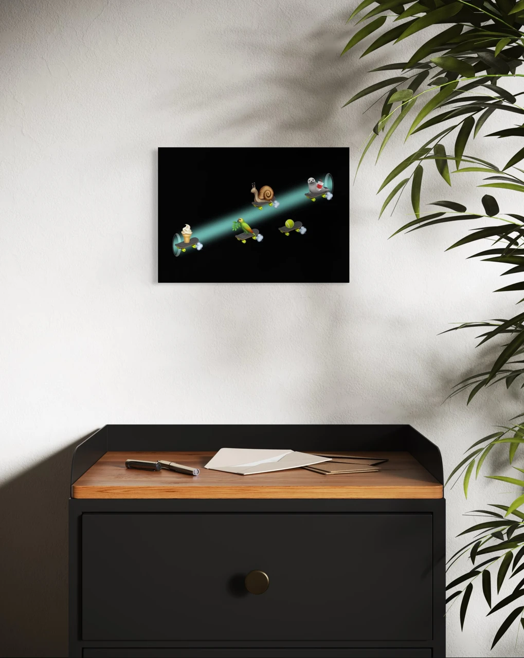 Александр Зайцев: «Горизонт событий — граница между видимой Вселенной и неизвестностью. Мне нравится элемент чуда: в самом густом черном пространстве, в котором совершенно не понятно, есть ли что-то, кроме этой темноты, неожиданно может появиться луч света, нечто магическое — и теперь в пустоте есть персонаж, и свет, и дыра. Например, в работе «Рука с зубной щеткой» из черной дыры вдруг появляется рука с зубной щеткой, окруженная мыльными пузырями. Откуда, зачем, почему — ответов нет, а есть просто чудо в самом темном месте во Вселенной в самые темные времена».