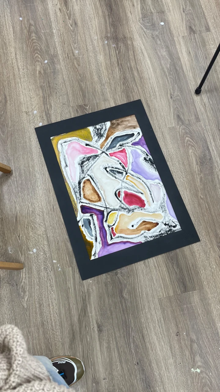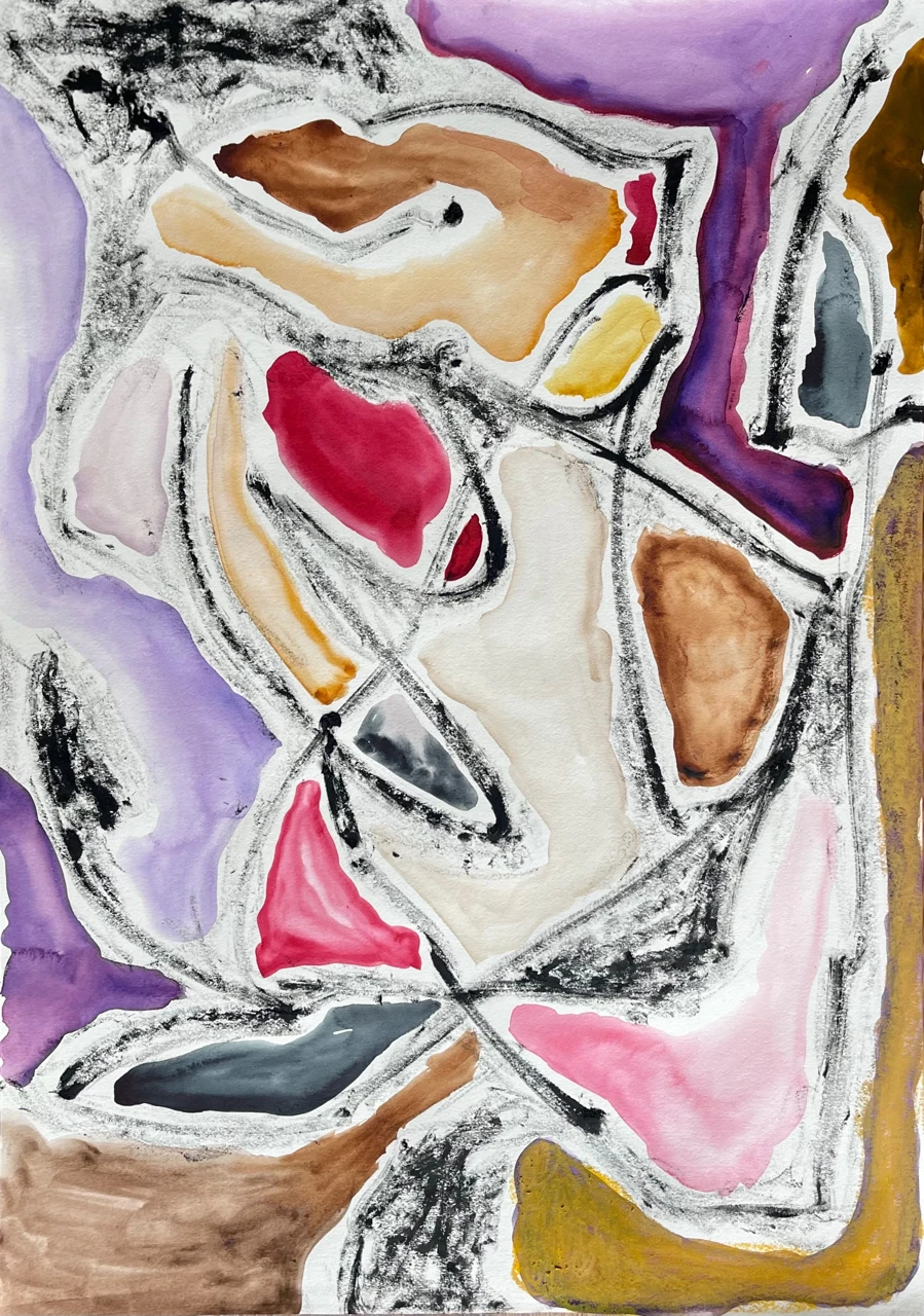 Из серии графических работ "Про пятна и линии". Мне было интересно, как грубые ломаные линии, выполненные масляными стиками, взаимодействуют с мягкими, плавными пятнами акварели.