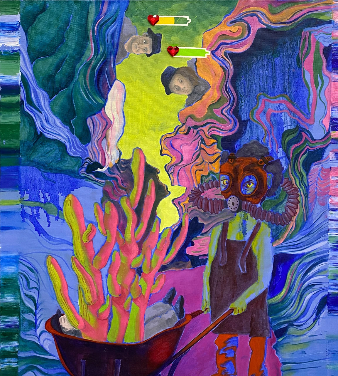 Александра Мееровская - междисциплинарная художница, работает с различными медиа, включая живопись, графику, фанерные объекты. В её работах детские воспоминания, социальная ирония и визуальные артефакты современности сосуществуют в зыбком равновесии, отражая хаотичную структуру современности.