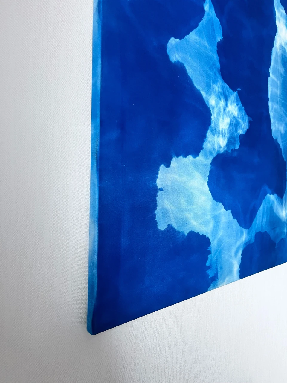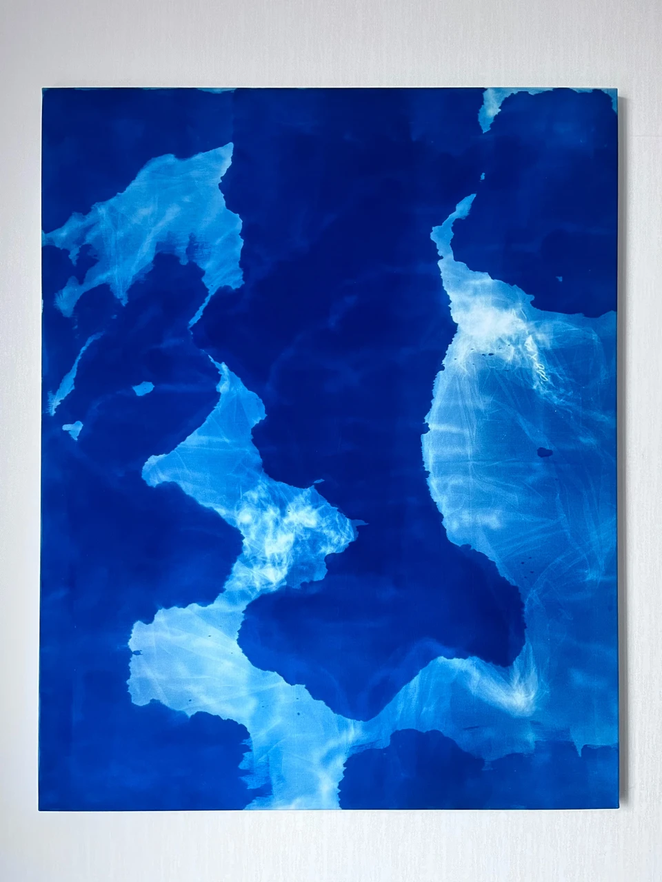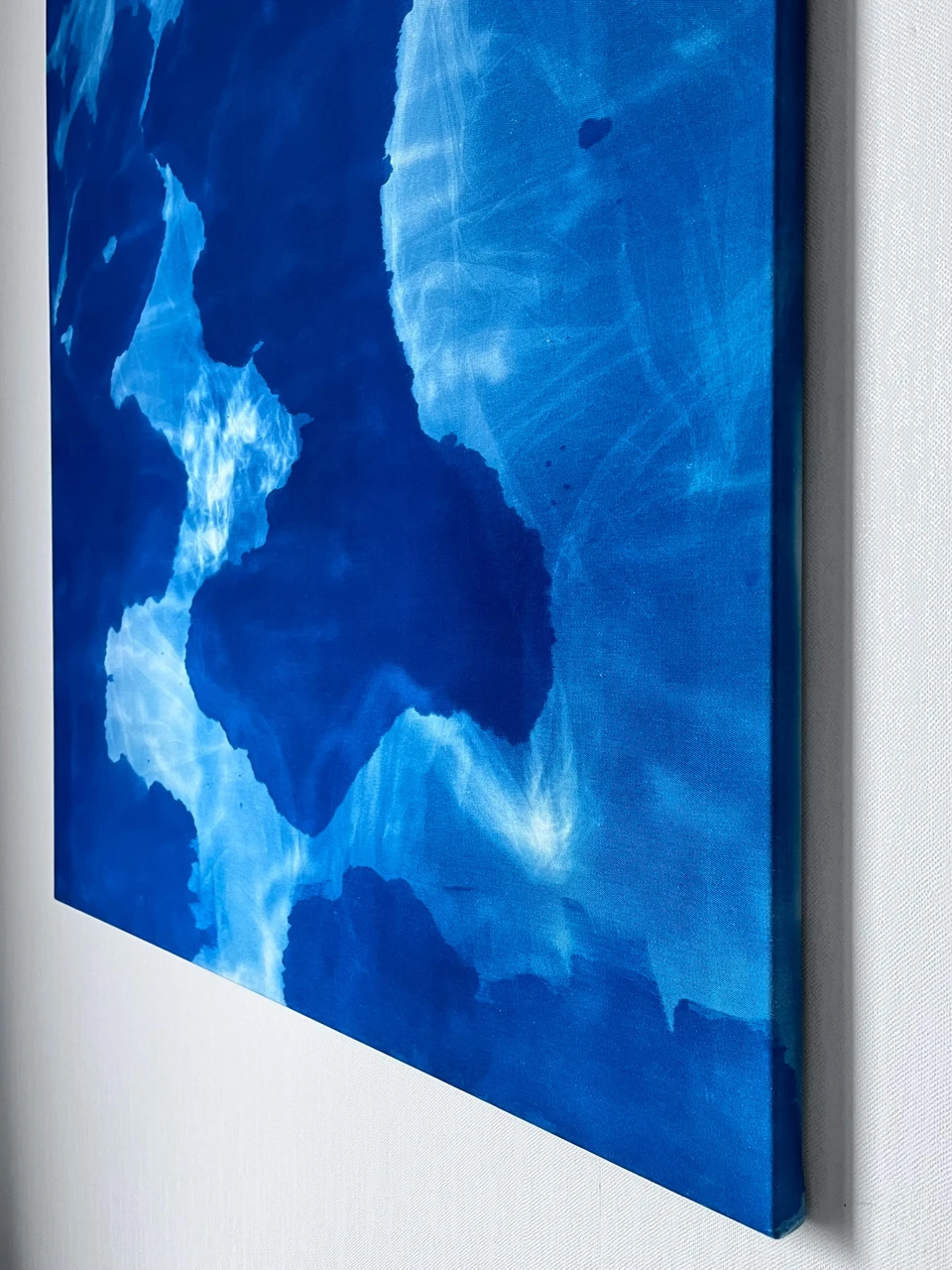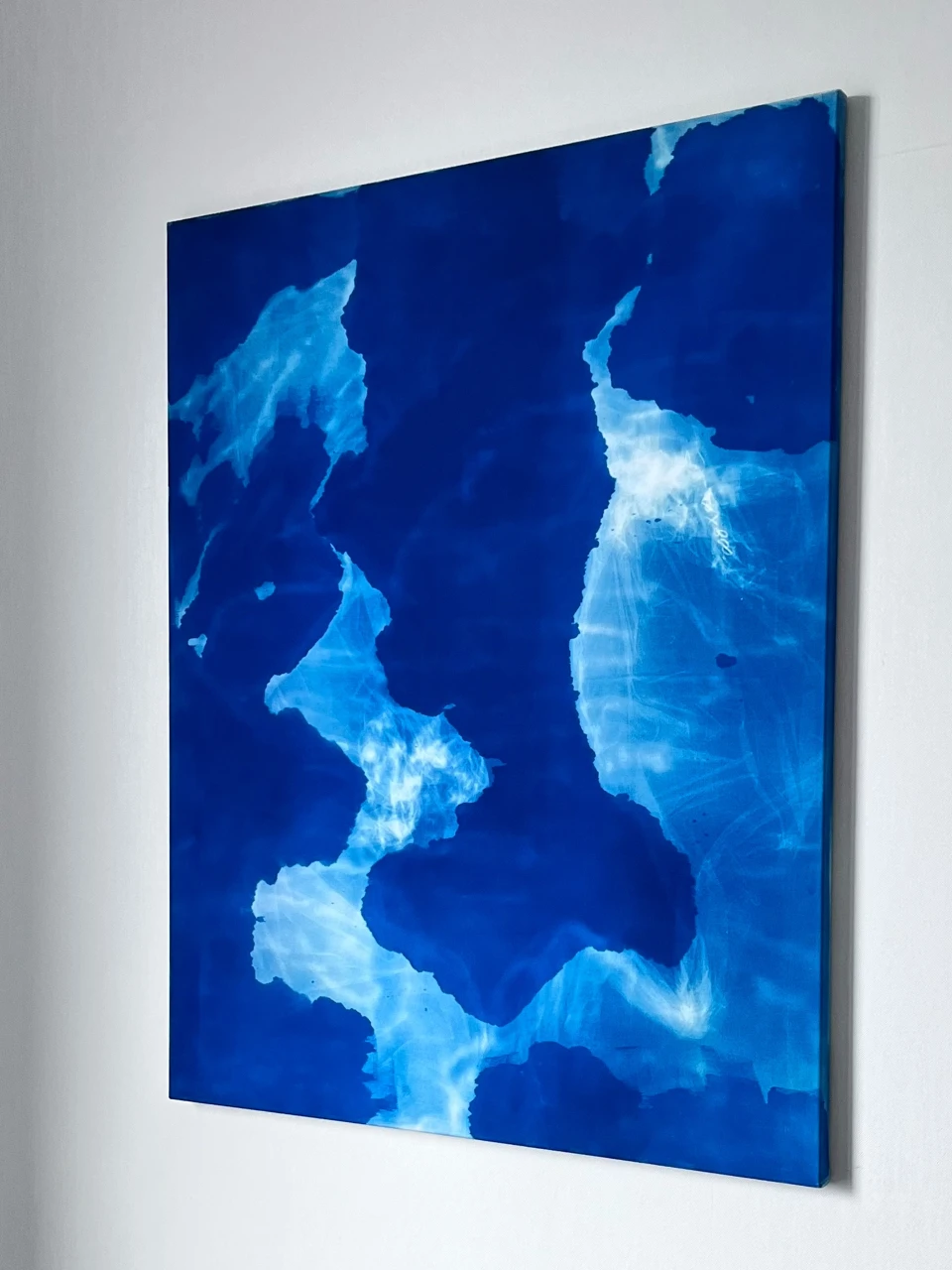 Работа относится к проекту "Ближе к воде", в котором автора привлекают образы движущейся воды, способные ослаблять негативную реакцию на раздражители окружающей среды. Вода выступает способом передачи изображений и движения. В основе визуального языка используются неповторяющиеся водные узоры, которые преобразованы в графические структуры.