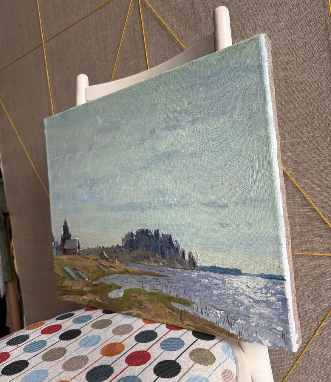 Эта работа относится к серии пейзажных произведений, созданных с натуры на пленэре. Художник регулярно совершает творческие поездки, благодаря чему география проекта охватывает самые разные места.