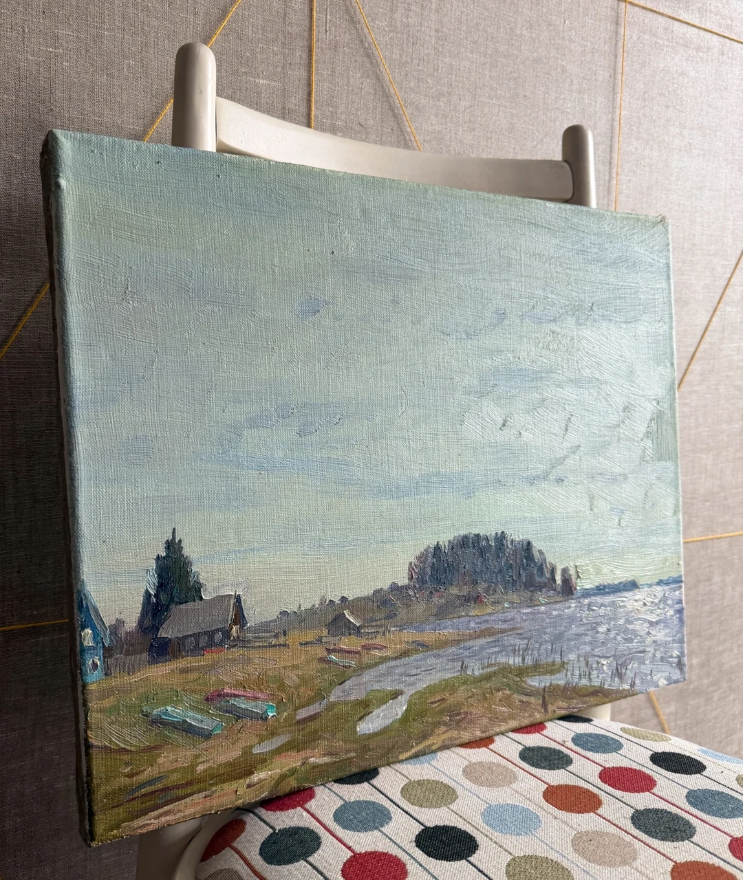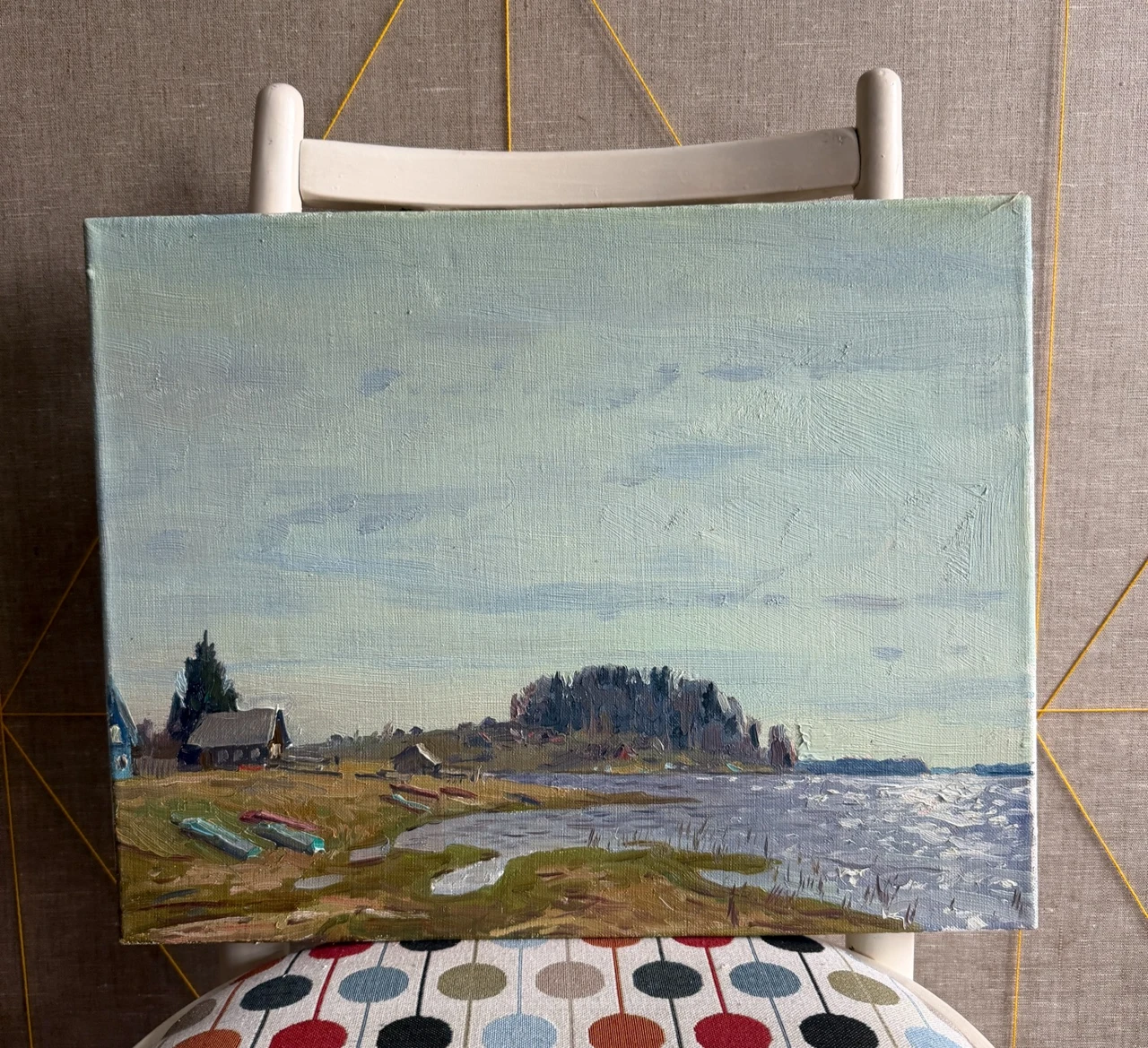 На данной работе изображен вид на северную деревню Вершинино. Деревня находится в Кенозерском национальном парке и является одни из знаковых мест Русского Севера.