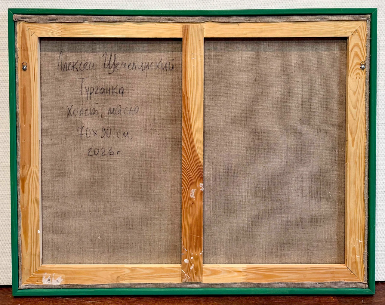Работа смонтирована на деревянный подрамник и оформлена в минималистичную деревянную окладку, вручную окрашенную в зелёный цвет. Произведение неоднократно выставлялось; окладка может иметь незначительные следы использования.