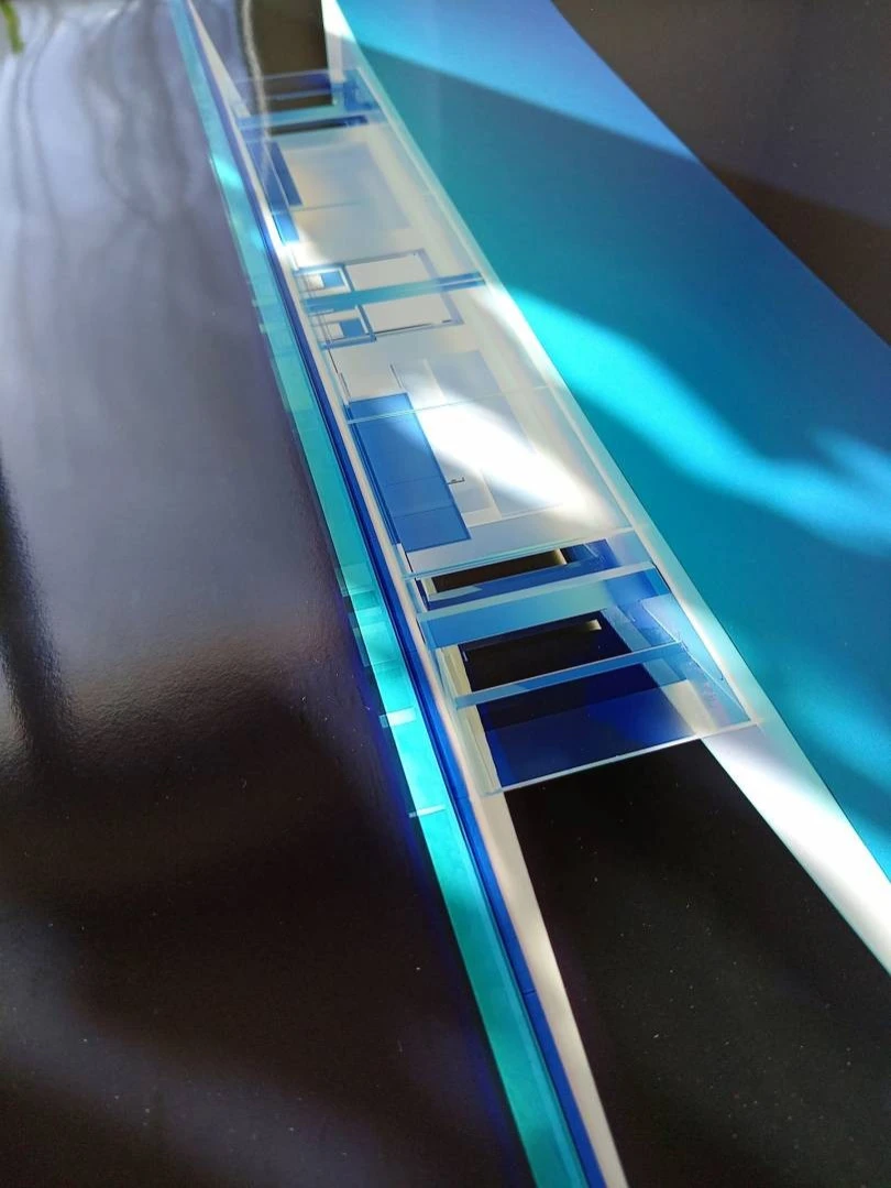 В основе художественного образа лежит совершенство симметрии, гармония непреодолимой силы водной стихии, объем здания второго этажа «парящая волна».