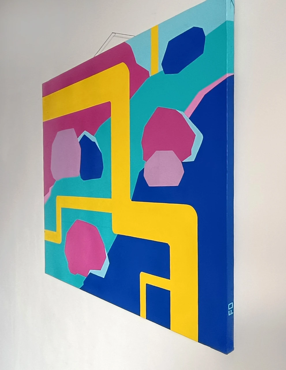 Главные темы в работах FO_OBJECTS — городские и природные объекты, а так же выражение сложных чувств в абстрактных формах. Среди медиумов художница отдает предпочтение акрилу, бумажному и текстильному коллажу.