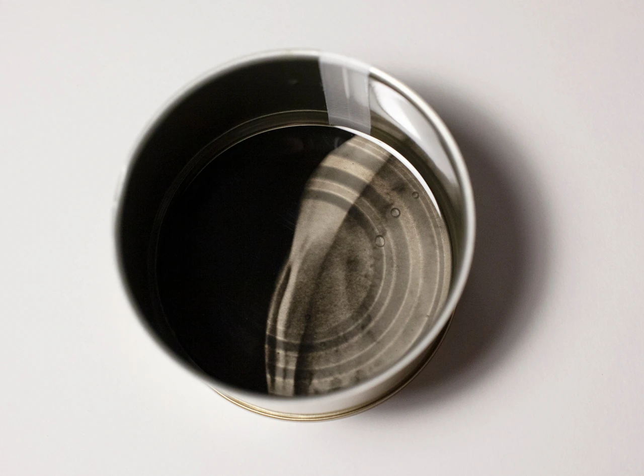 Проект состоит из 90 консервных банок с отпечатками фрагментов моего рентгена на дне, залитыми эпоксидной смолой. Диаметр каждой банки — 83,4 мм, высота — 57 мм.