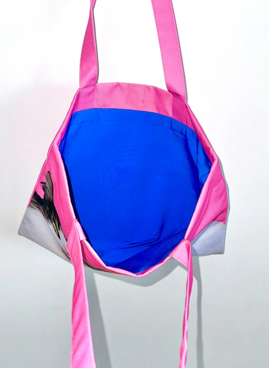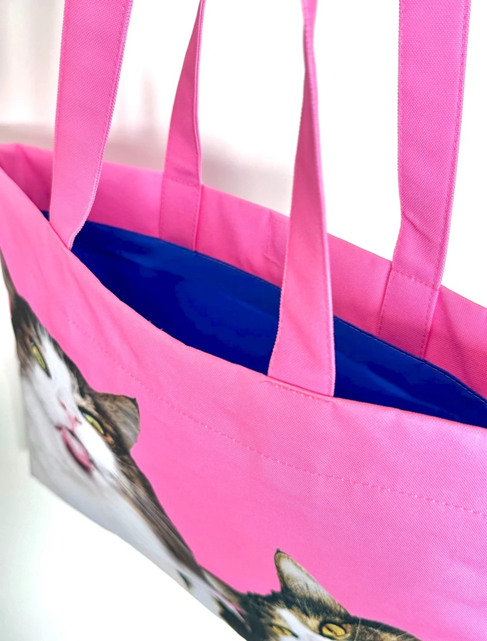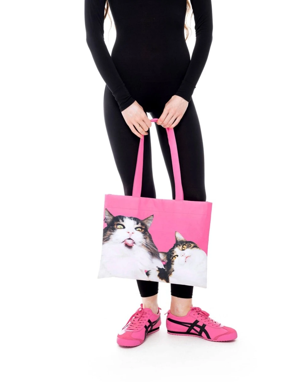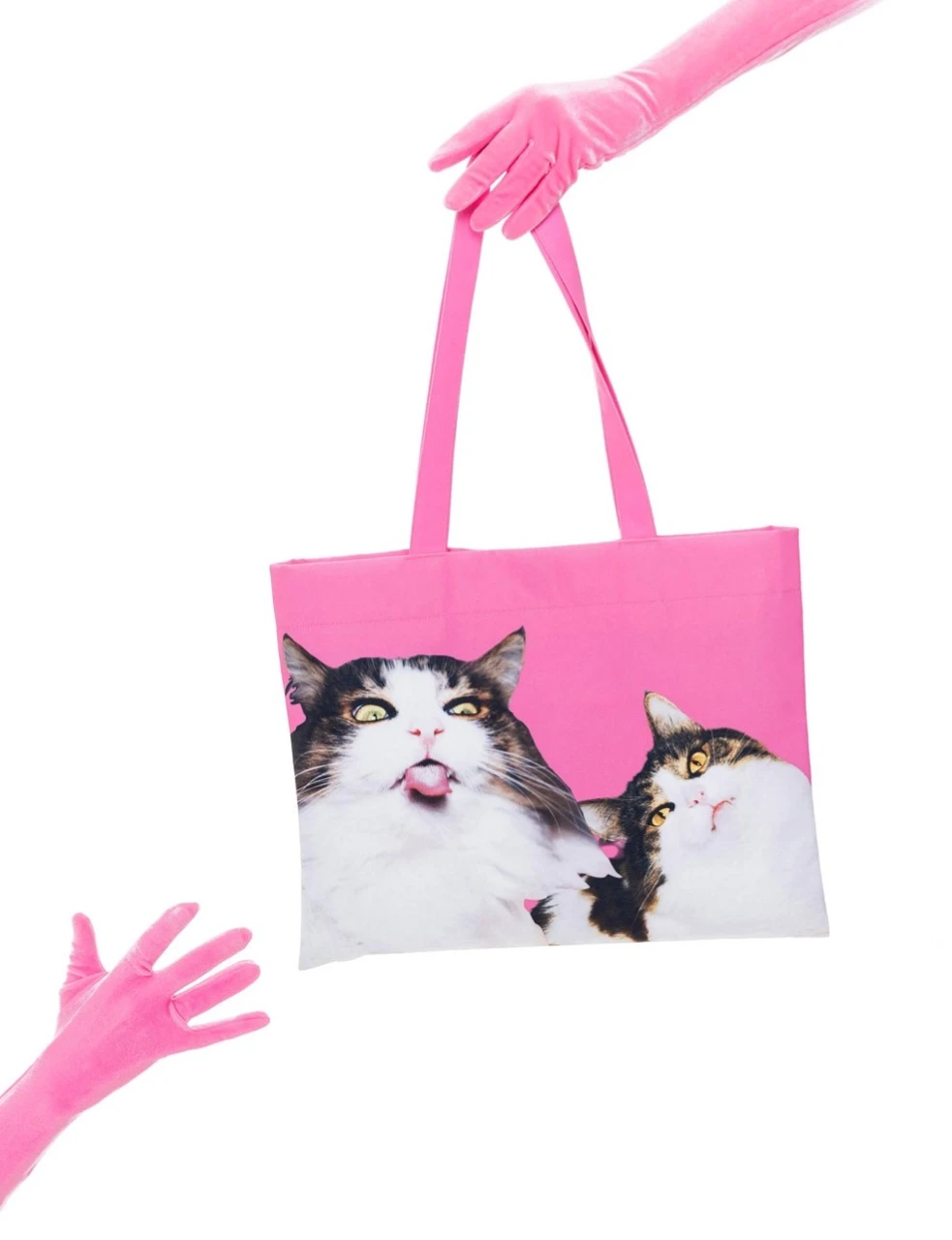 Сумка-шопер, созданная в коллаборации с художницей Алиной Глазун. На принте изображены её любимые коты — Федор и Уиллис, ставшие героями многих её работ. Яркий сублимационный рисунок и насыщенный розовый цвет делают сумку заметным акцентом в образе.