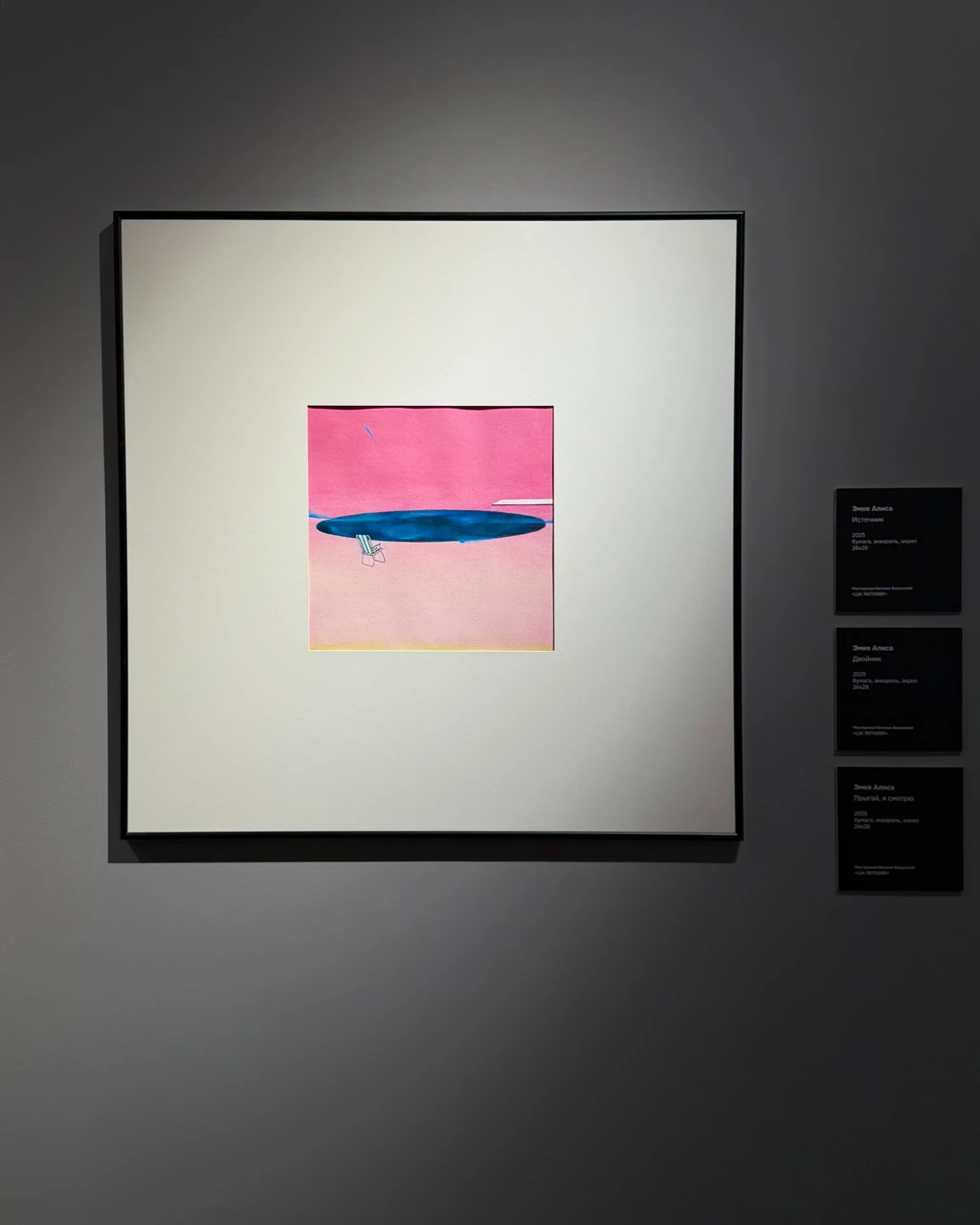 Работа оформлена в широкое паспарту и алюминиевую раму с прозрачной вставкой ПЭТ 0.5 мм. Размер с оформлением - 65*65 см., без оформления - 26*26 см. Работа находится на выставке до 11.12.2025