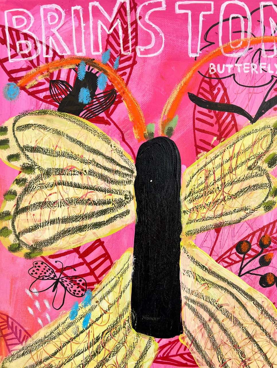 Бабочка лимонница, которая всю зиму была на витаминах и к весне самая бодрая.