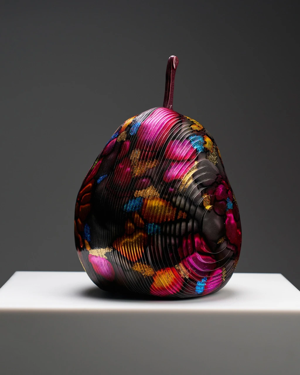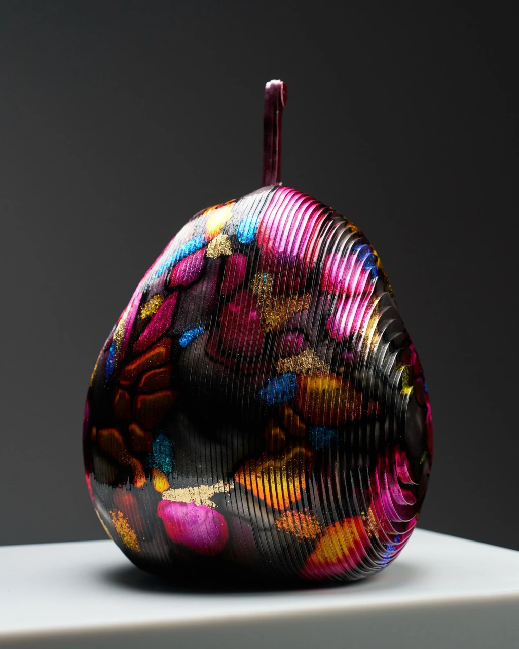 Декоративная отделка выполнена авторским методом аэрографии, перламутровый эффект, хамелеон, графит, многоцветная поталь, флейки, керамический лак.