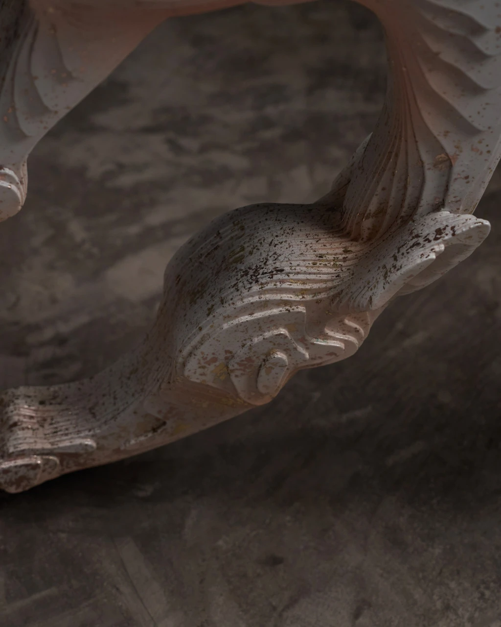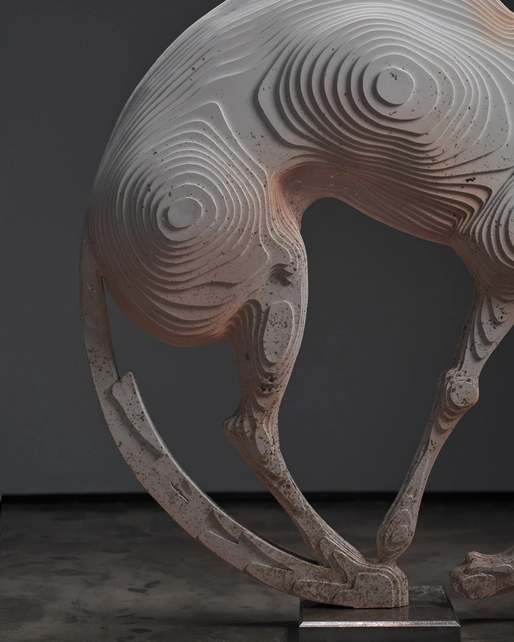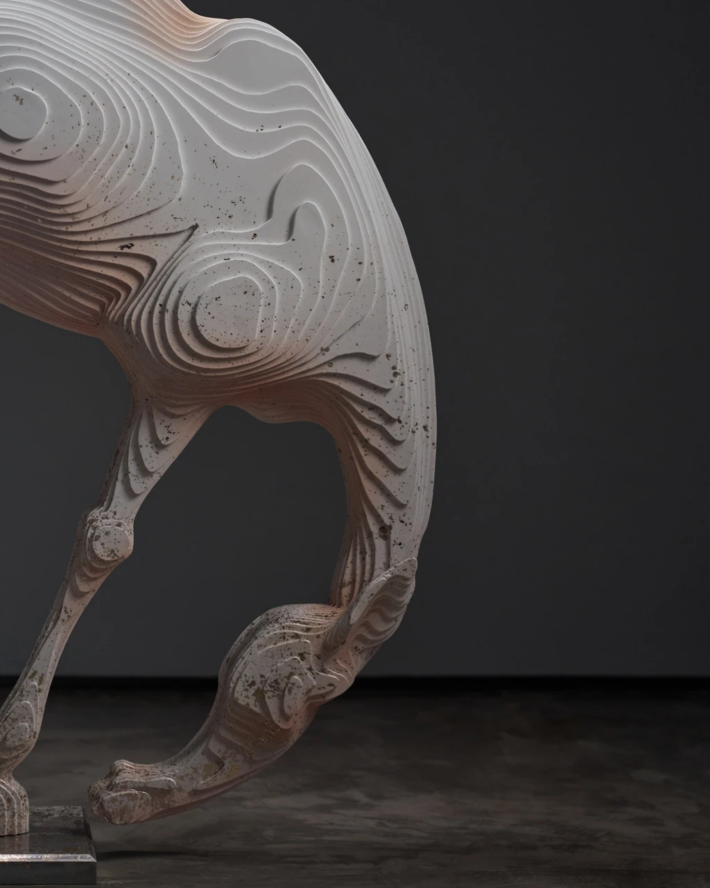 Фигура изготовлена по эксклюзивной технологии ручным способом из 178 деталей алюминиевого сплава толщиной 4 мм, применяемого в аэрокосмической отрасли, судостроении и авиации, что обеспечивает ее прочность и легкость.