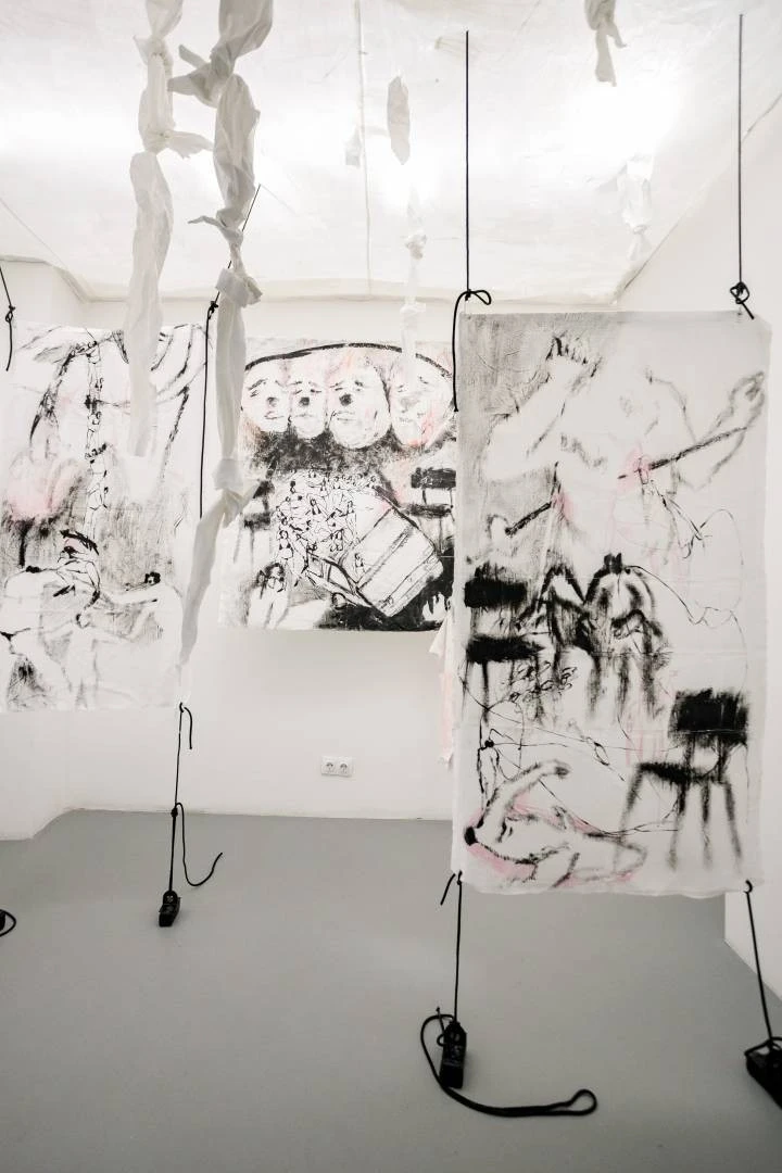 В своих последних работах, накладывая графические миры на холсты, тканевые ленты и конструкции, я исследую проблему одиночества и трансформации человека.