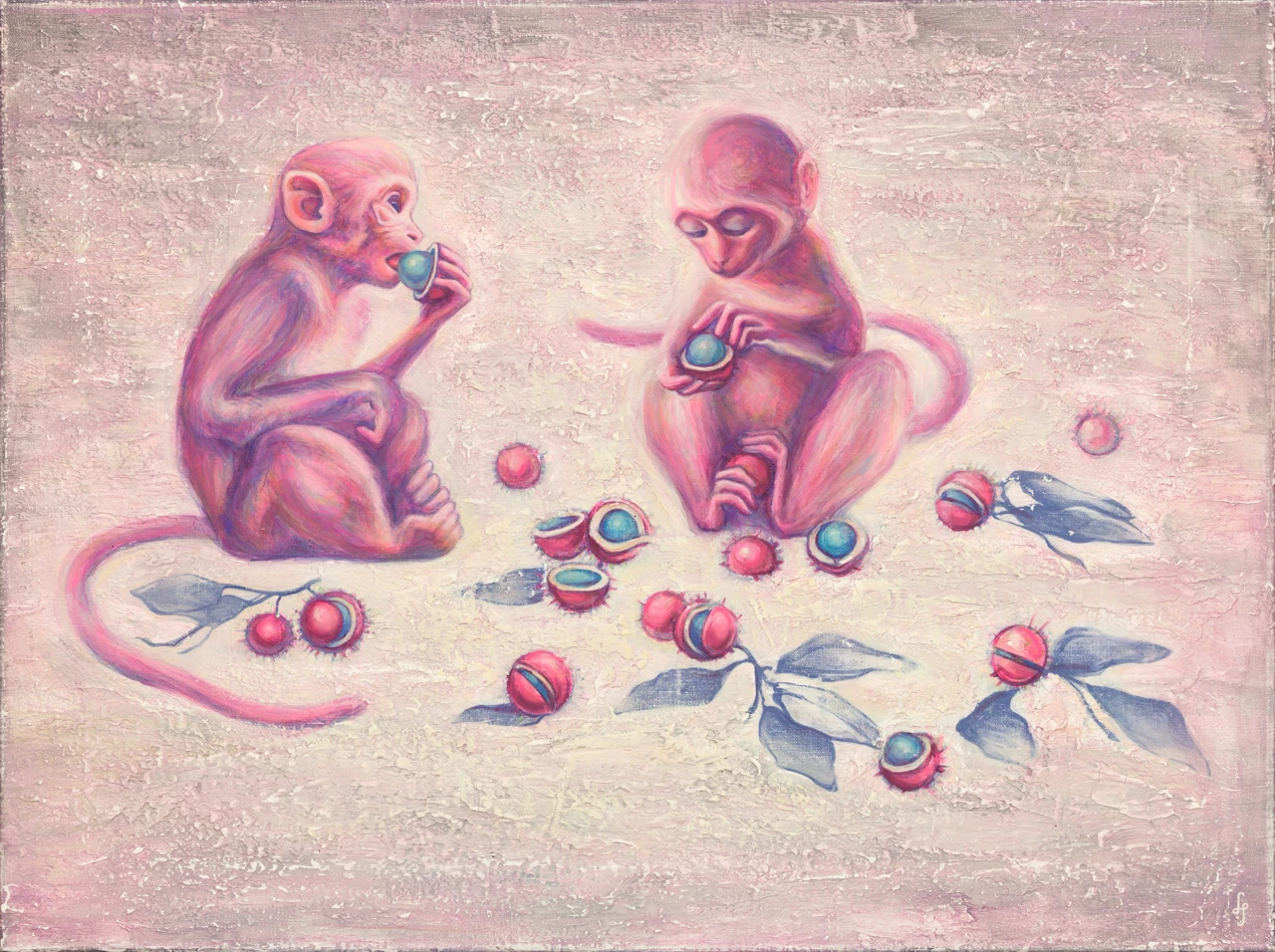 «Остров» как метафора внутреннего убежища, визуально очищенного от конфликта и драматургии. Сцена с двумя розовыми обезьянами, погружёнными в гедонистический жест, как ироничный ритуал спокойствия и доверия миру.