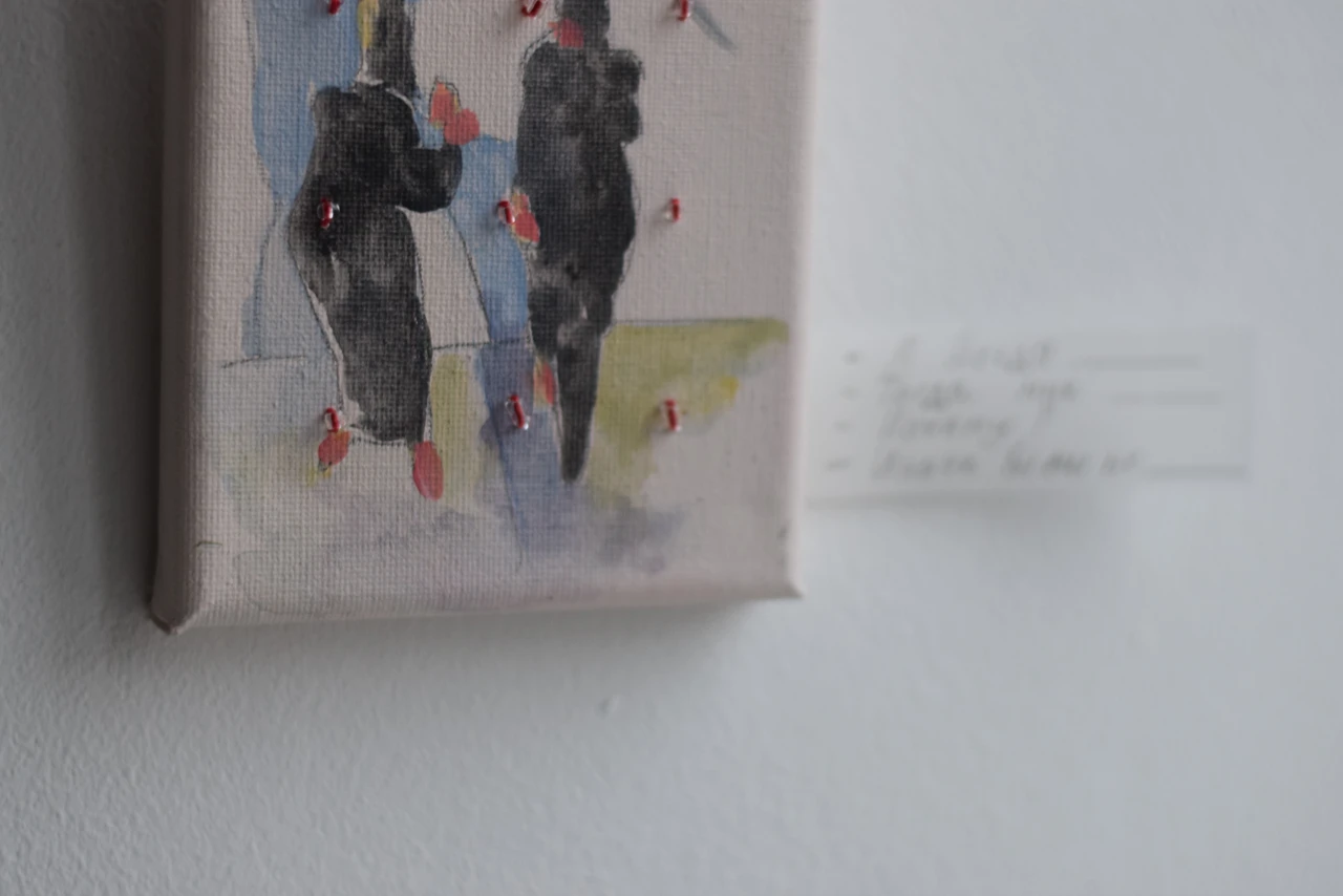 Каждое изображение — след от жеста, взгляда, чувства, которое, возможно, было разделено с кем-то. В серии я ставлю вопросы: Это произошло или просто случайно сохранилось в памяти? Была ли встреча или только желание её? Было ли чувство или только образ? Бусины — это способ передать чувственность, осязаемость. Малый формат — мера интимного, личного.