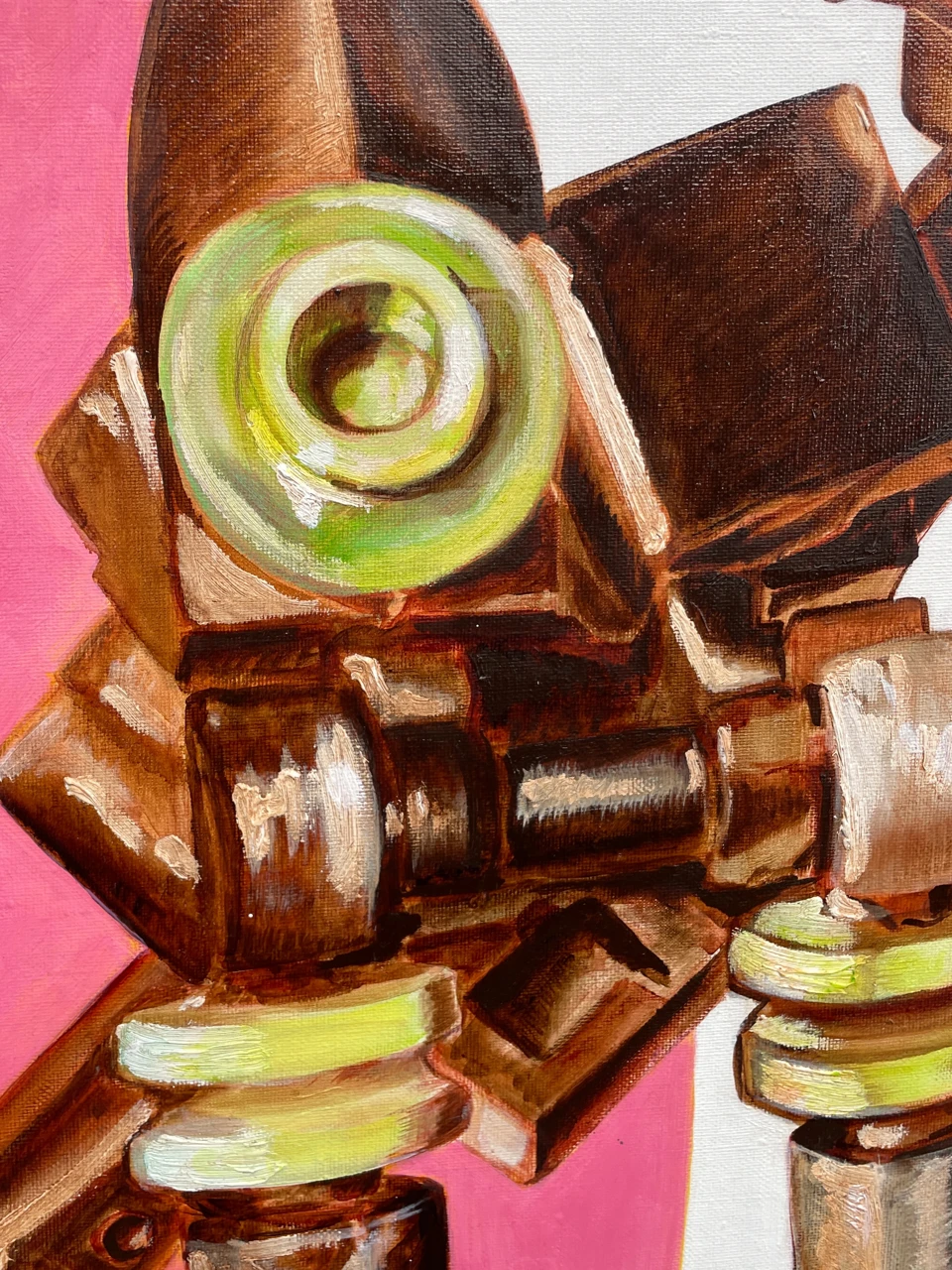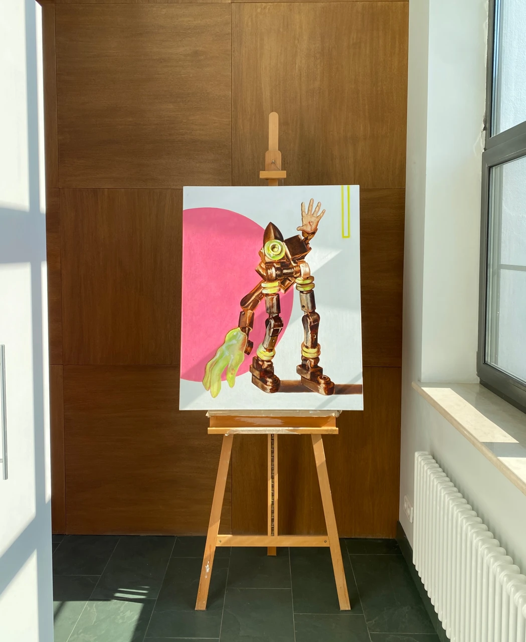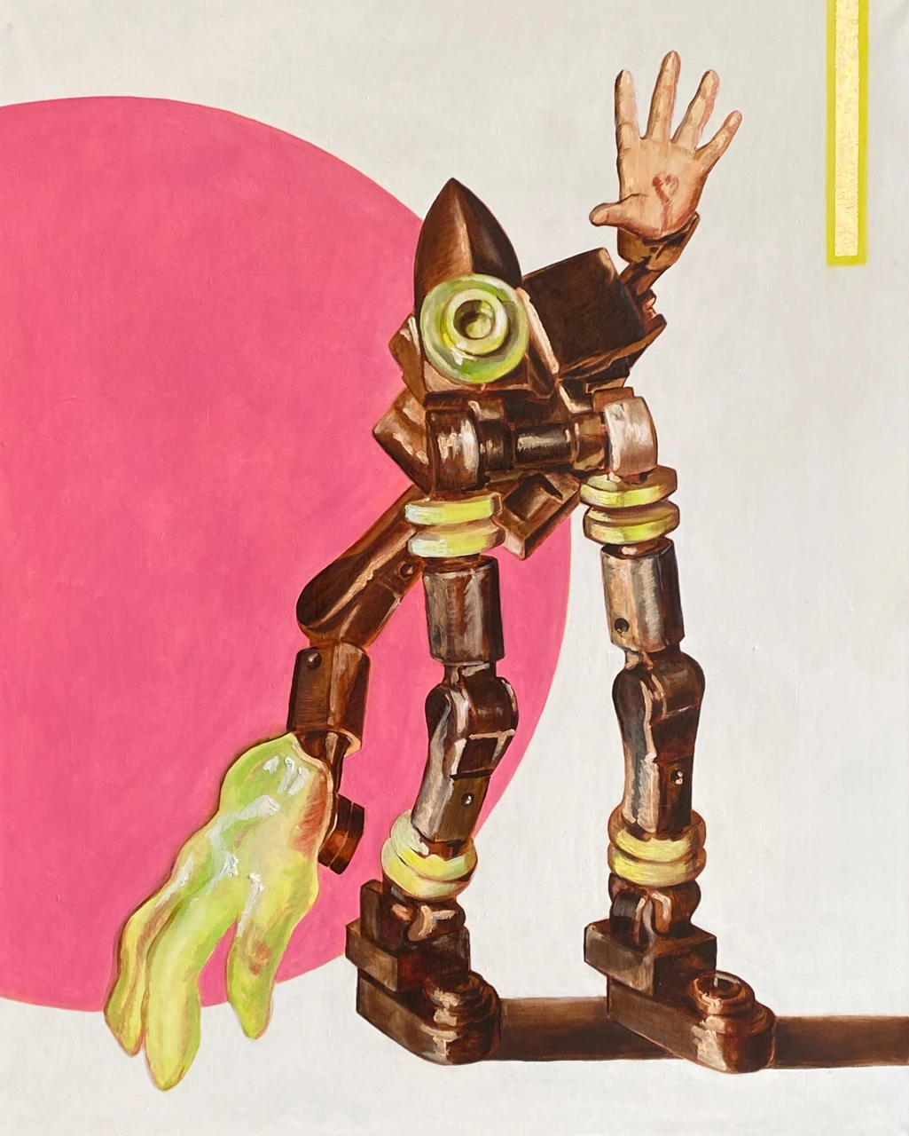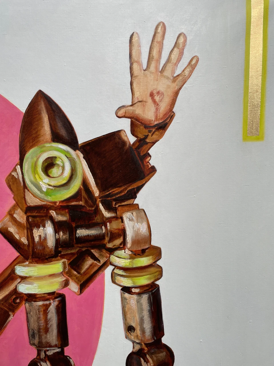 Через соединение классической живописной техники и образов техногенной культуры художница исследует, как меняется представление о теле, идентичности и человеческом присутствии в эпоху стремительного развития технологий.