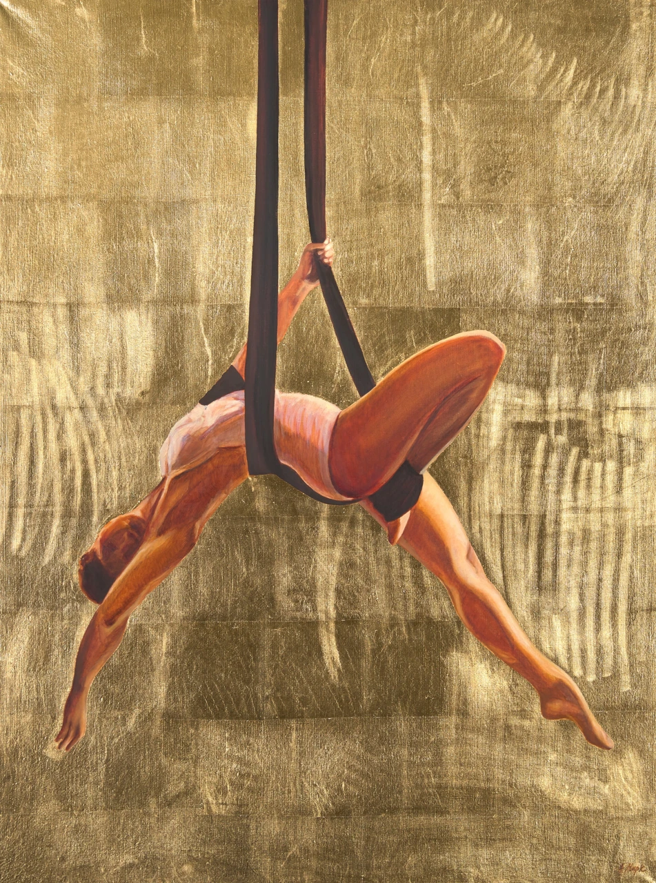 Серия «Золотые работы» рассматривает тело как объект современного культа. Помещая фигуры спортсменов в пространство золотого фона, художница сознательно обращается к визуальному языку иконописи, где золото обозначает сакральное измерение.