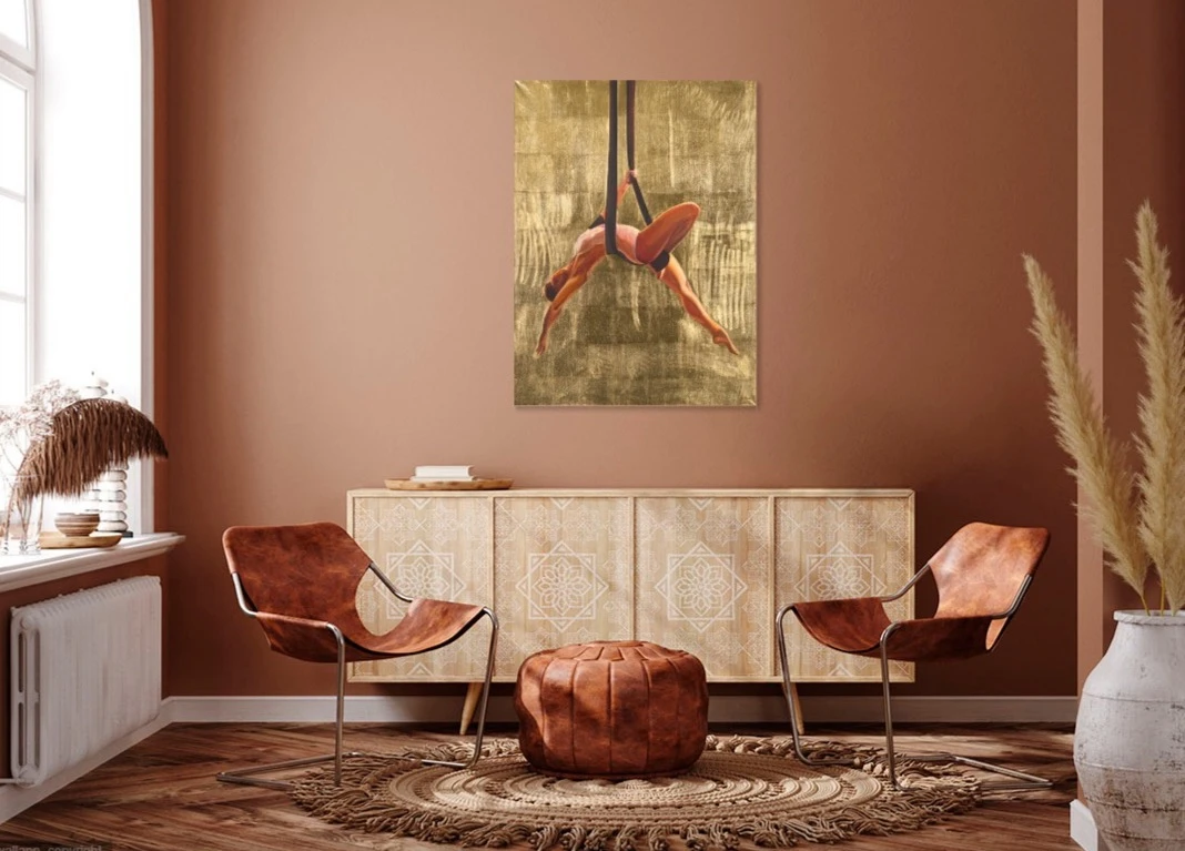 Атлеты лишены индивидуальности и функционируют как знаки — универсальные образы, транслирующие идею дисциплины, контроля и стремления к недостижимому идеалу. Золотой фон не только возвышает фигуру, но и фиксирует её в состоянии вне времени, превращая в объект созерцания и «поклонения».