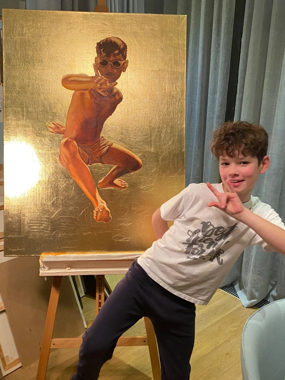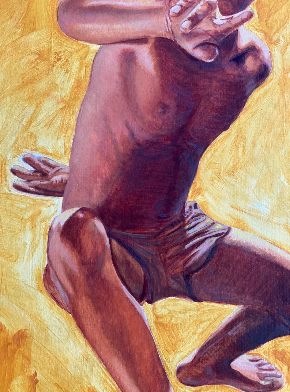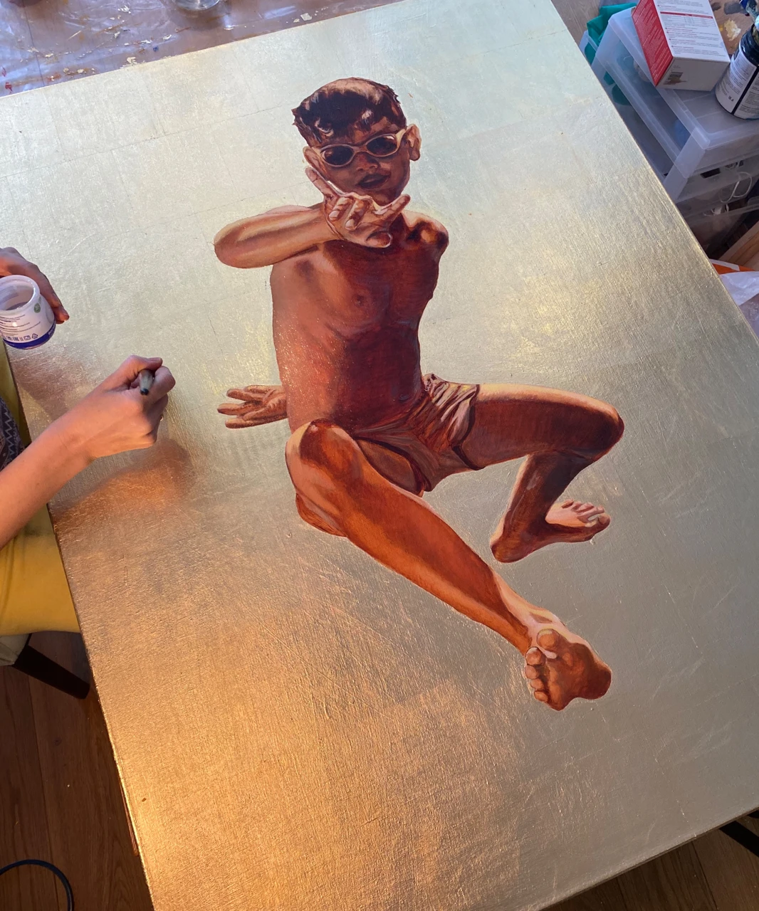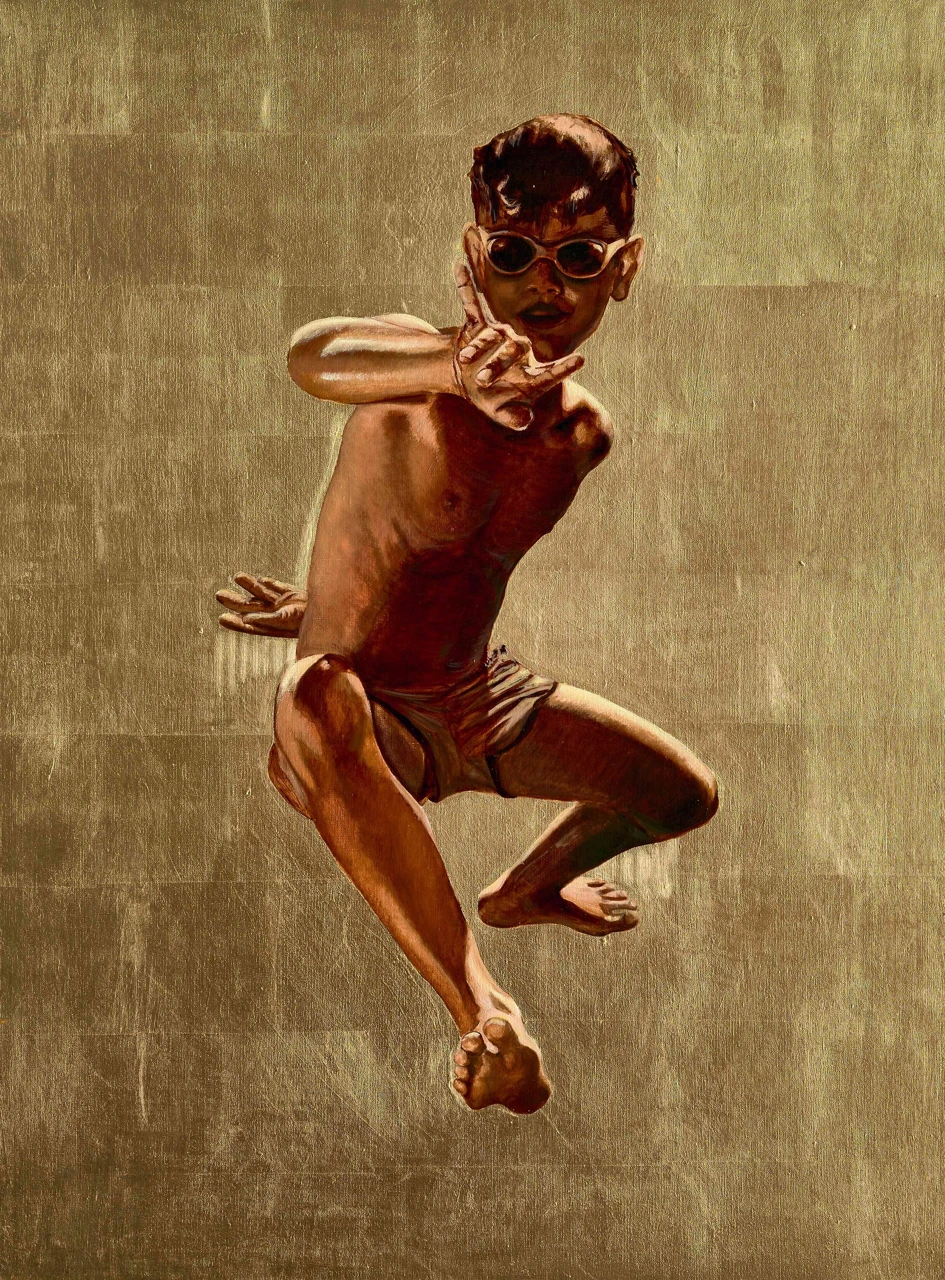Серия «Золотые работы» рассматривает тело как объект современного культа. Помещая фигуры спортсменов в пространство золотого фона, художница сознательно обращается к визуальному языку иконописи, где золото обозначает сакральное измерение.
