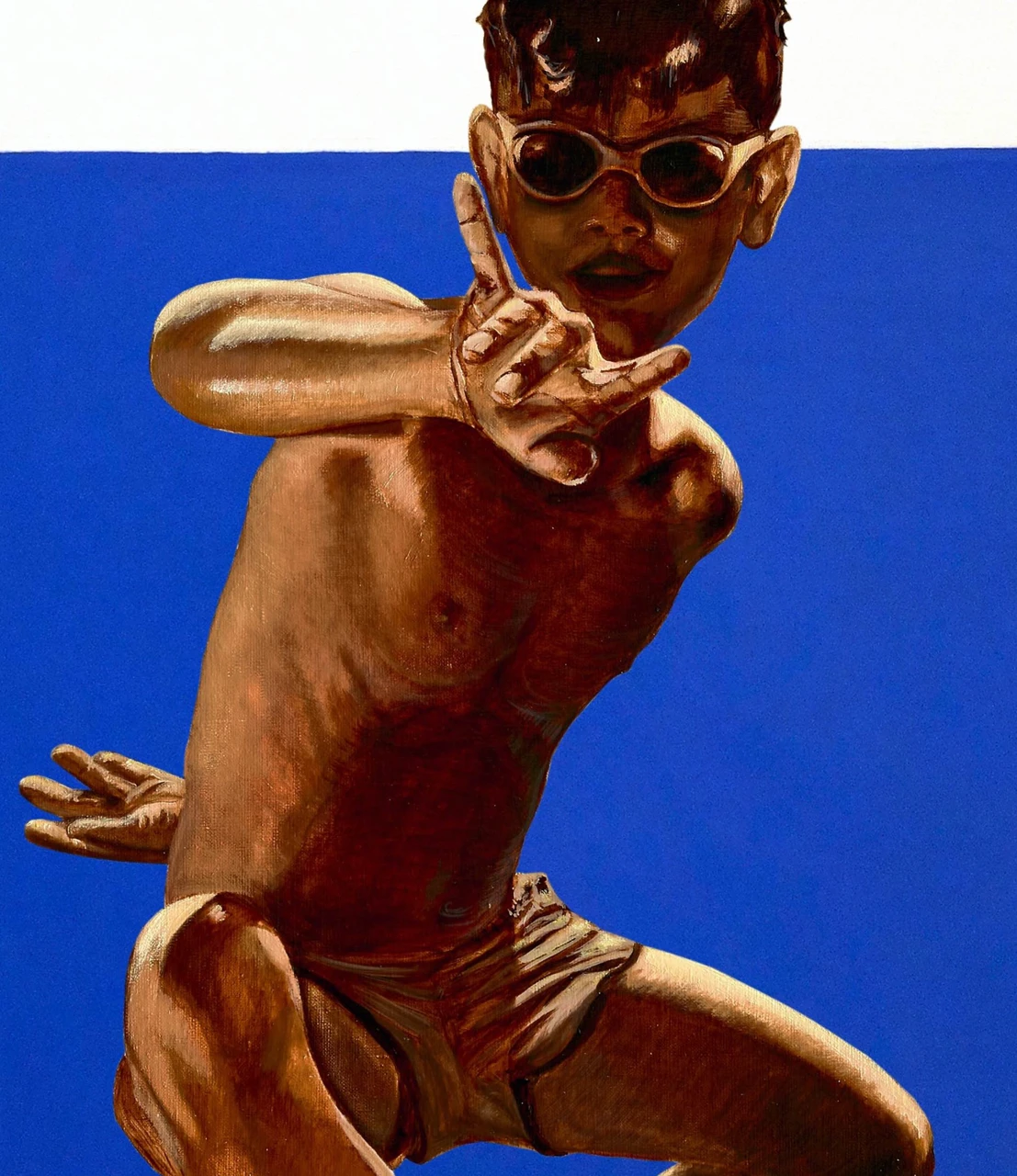 Работы развивают мотив «золотых» фигур, в которых тело рассматривается как объект современного культа. Образы вдохновлены архивной советской спортивной фотографией, где физическая форма выступала носителем идеологии и заменяла собой религиозный образ. Сегодня эта логика возвращается в цифровом пространстве в культе тела, визуальном самопрезентировании и стремлении к совершенству.