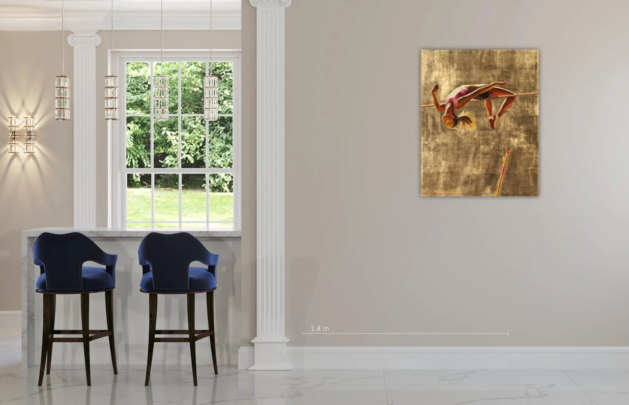 Атлеты лишены индивидуальности и функционируют как знаки — универсальные образы, транслирующие идею дисциплины, контроля и стремления к недостижимому идеалу. Золотой фон не только возвышает фигуру, но и фиксирует её в состоянии вне времени, превращая в объект созерцания и «поклонения».