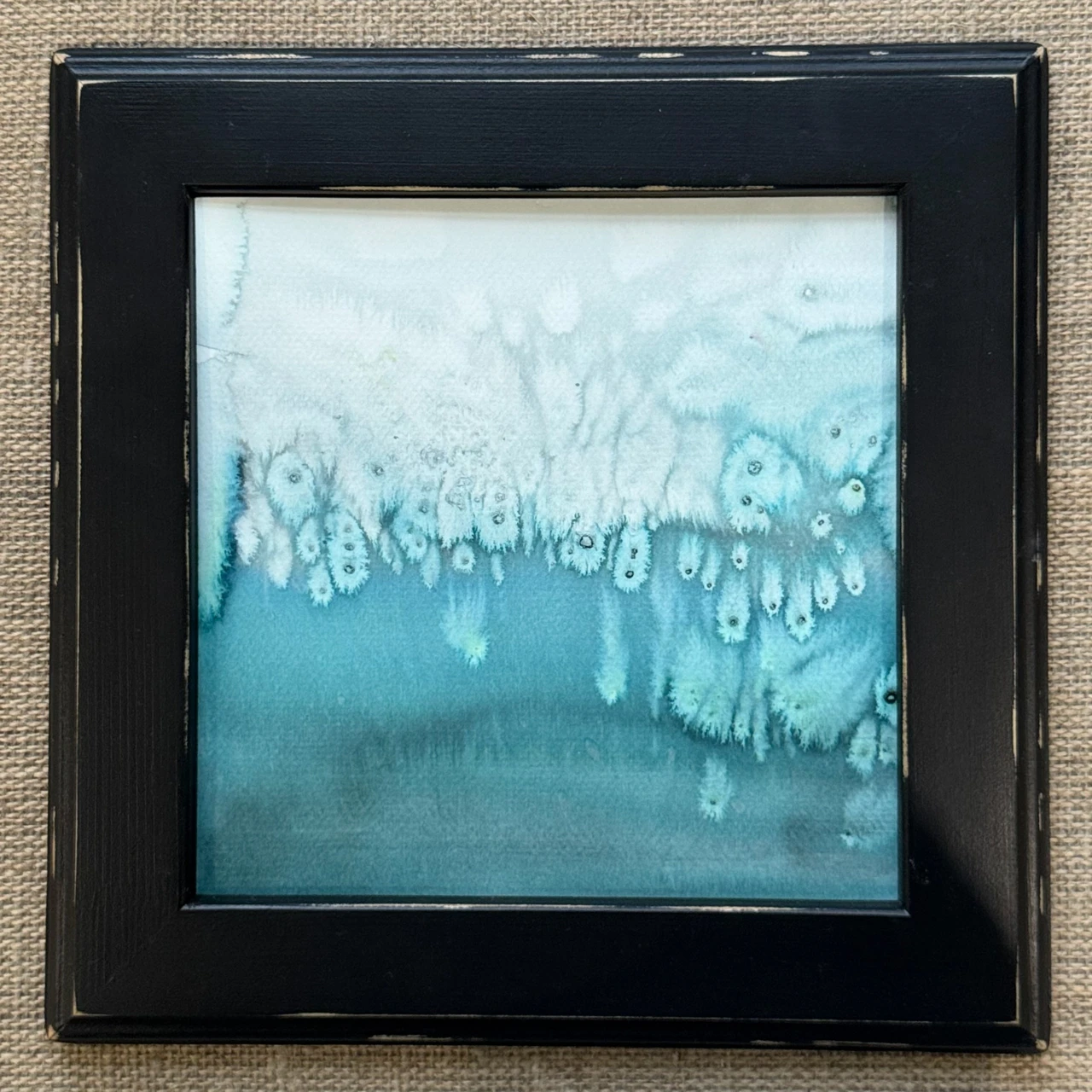 Работа выполнена цветными чернилами на бумаге, оформлена в раму.
