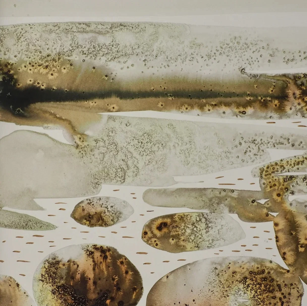 Графическая работа изображает берег реки Катунь на Алтае — одно из мест, вдохновляющих автора.
