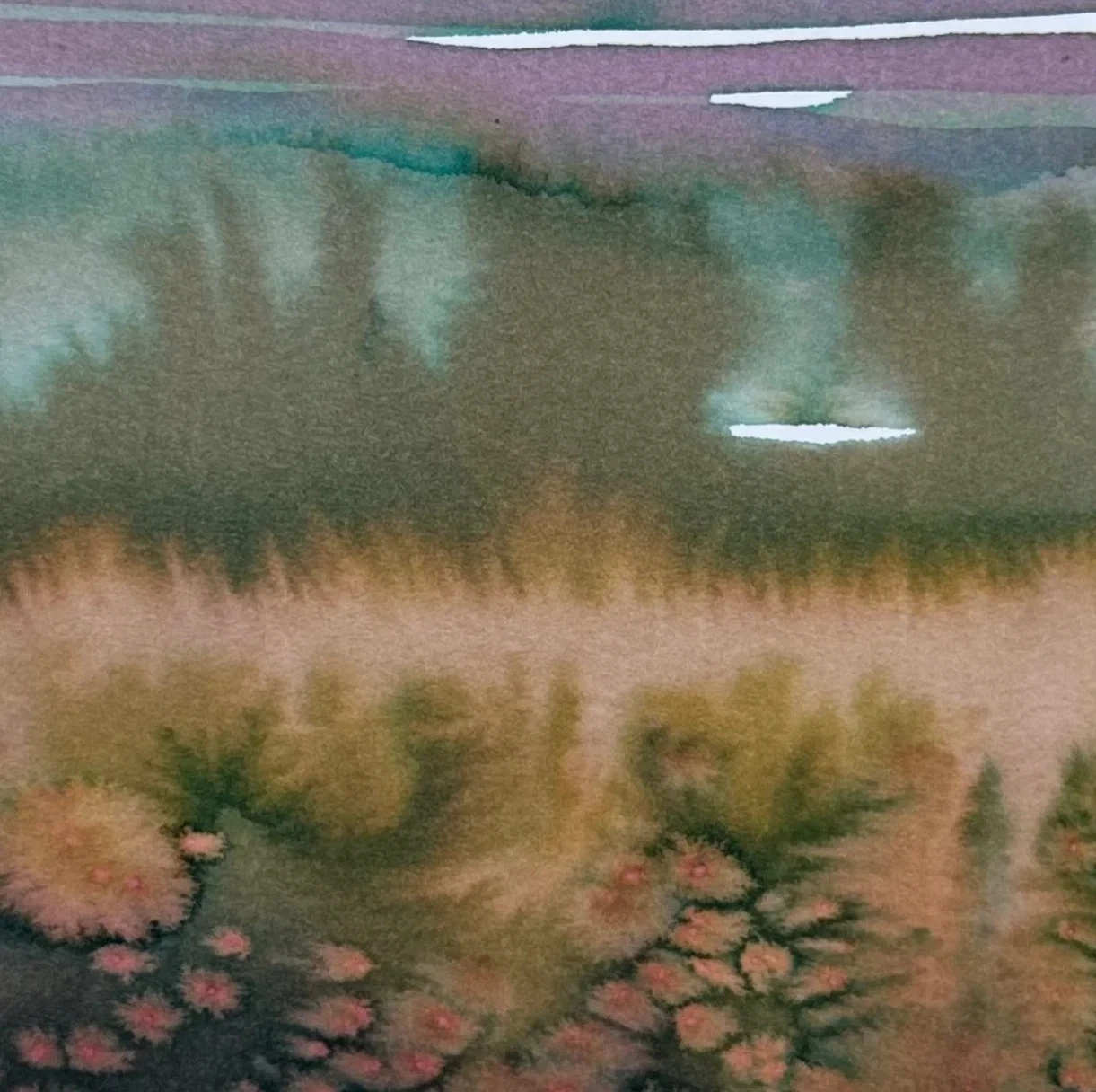Графическая работа, посвященная любованию утренней свежестью и спокойствием природы.