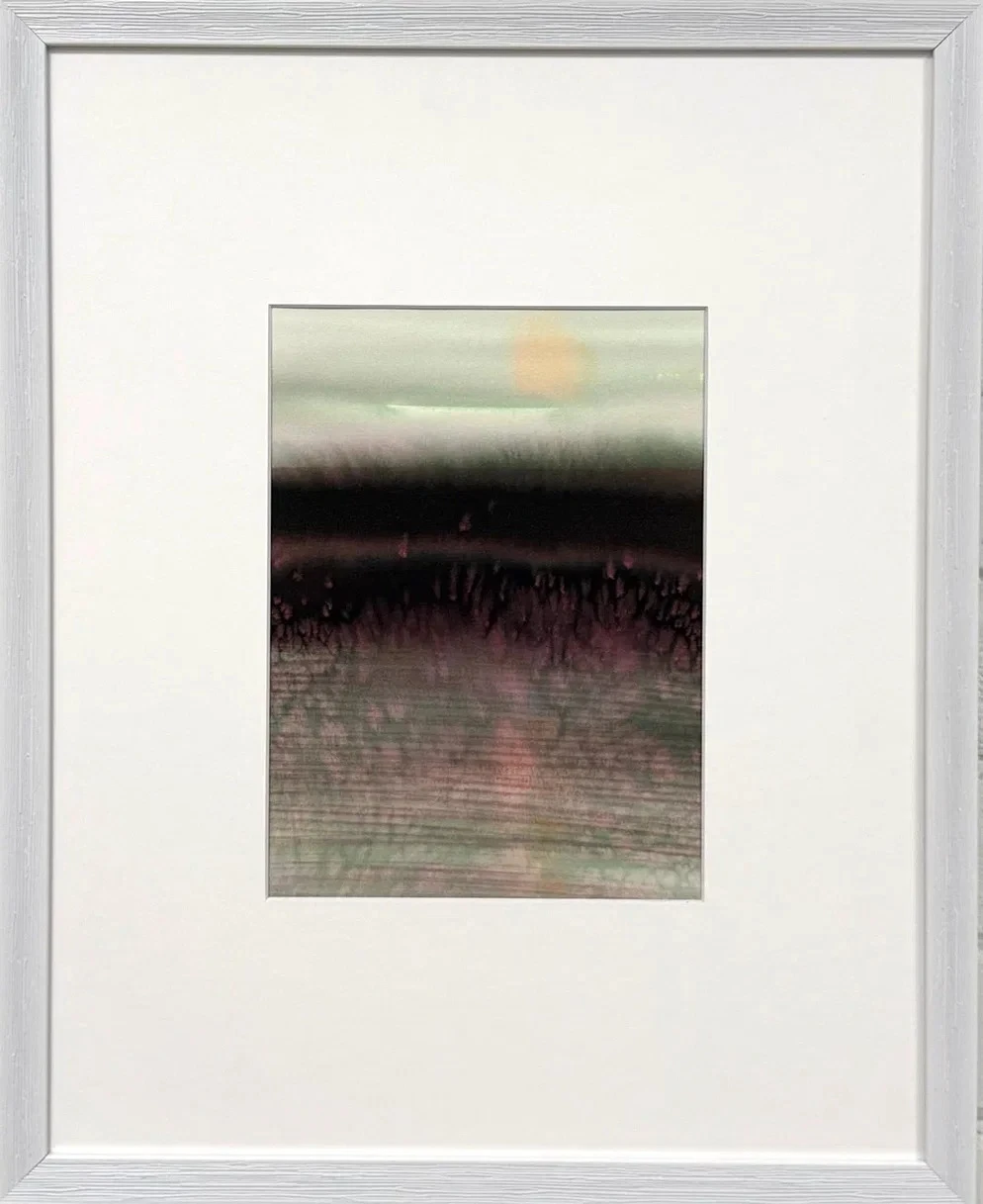 Работа выполнена цветными чернилами на бумаге, оформлена в паспарту и раму.