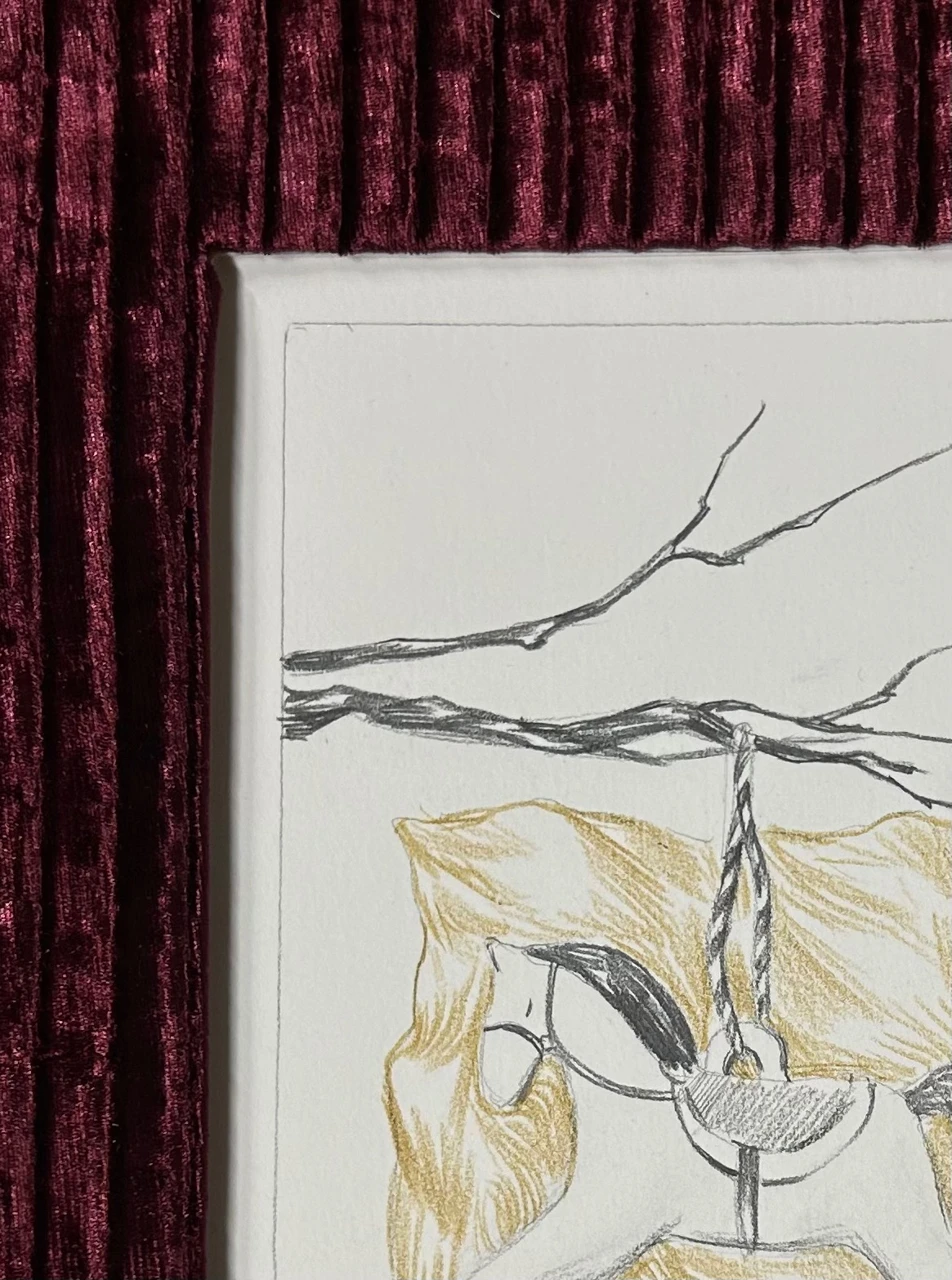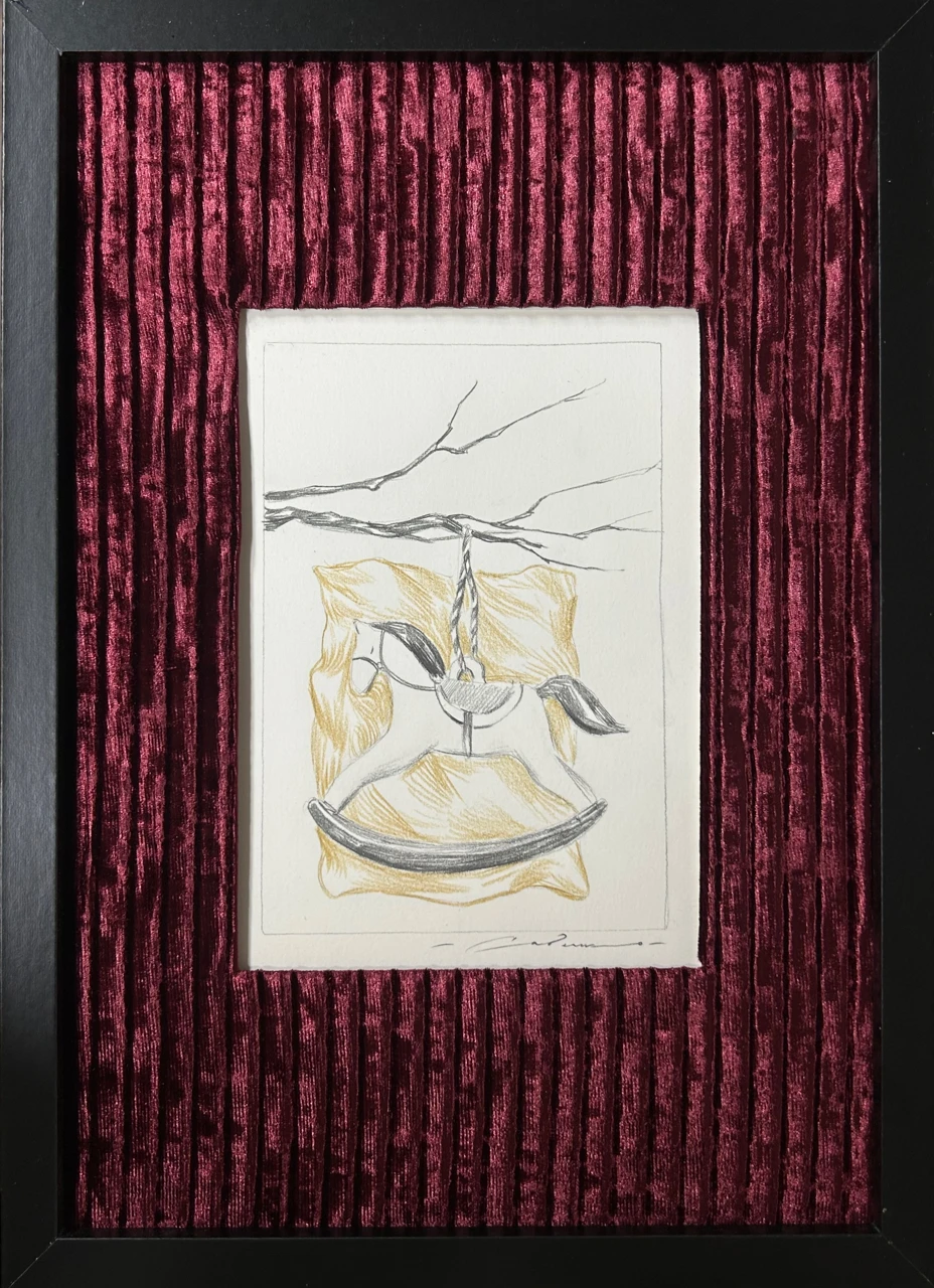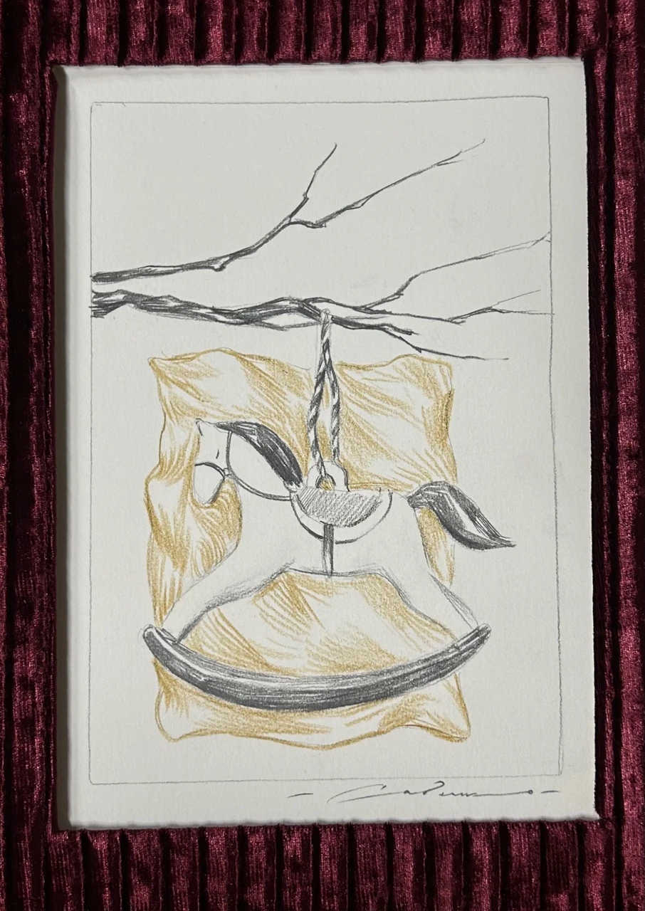 Работа является частью серии, посвященной массовой ностальгии по детству, либо по времени, в которое ностальгирующего человека могло даже еще не быть на свете. В работах собраны ностальгические элементы, такие как серебряный поднос, замысловатая ваза с цветами, винтажные зеркала, а также игрушки лошадки, дополненные бархатным оформлением, отсылающим к эстетике старых фотоальбомов в бархатных обложках.