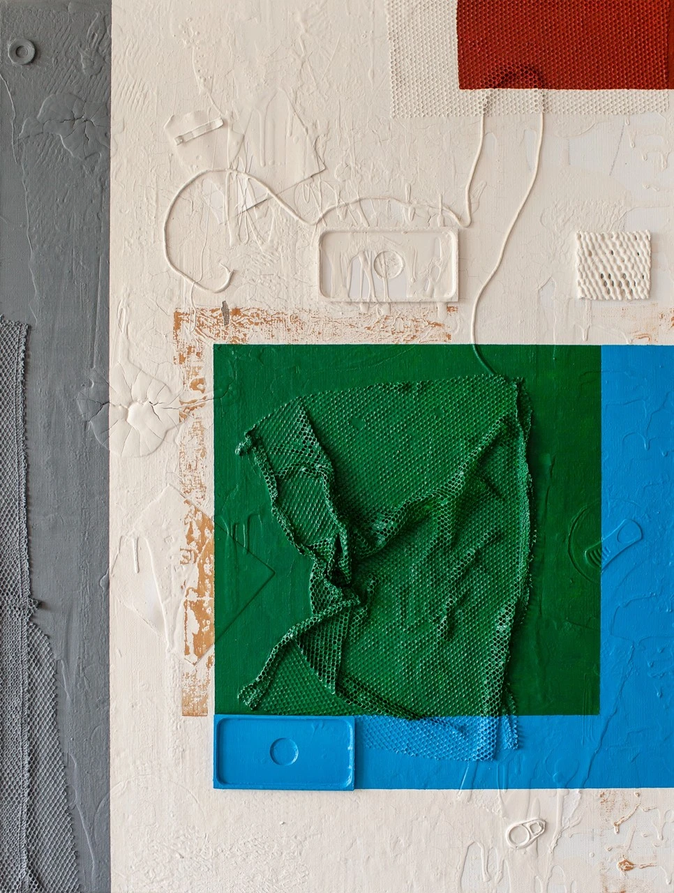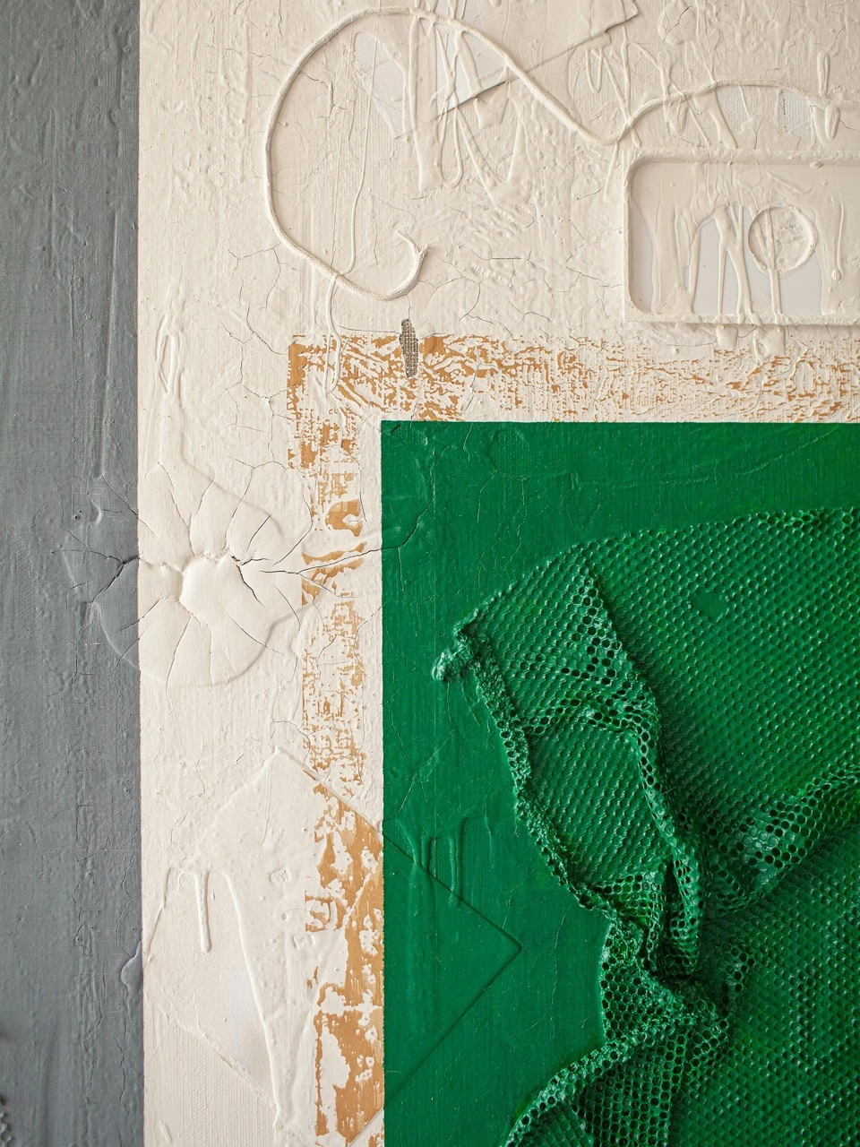 Работы серии ВЕСНА имеют несколько слоев, отличающихся пластикой и смыслом. Первый слой рельефный, и содержит в себе различные мелкие предметы (в том числе найденные), которые встречаются на улицах города. Этот слой также включает в себя различного рода сетки, которые являются метафорой границы, забора, обособленности — неизменный атрибут городского пространства. Второй слой красочный — он равнодушно покрывает собой поверхность и находящиеся на ней предметы, лишая их выразительности и индивидуальности. С другой стороны, красочный слой выступает своего рода консервантом, запечатывая и сохраняя предметы для вечности, которые в таком положении приобретают значение ценного ископаемого, становятся отпечатком времени и места.