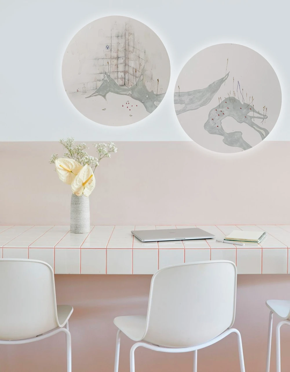 Обе картины создают атмосферу загадочности и лёгкой меланхолии. Сочетание органических форм, архитектурных элементов и минималистичных акцентов вызывает ассоциации с природными и урбанистическими мотивами, переплетёнными в едином пространстве.