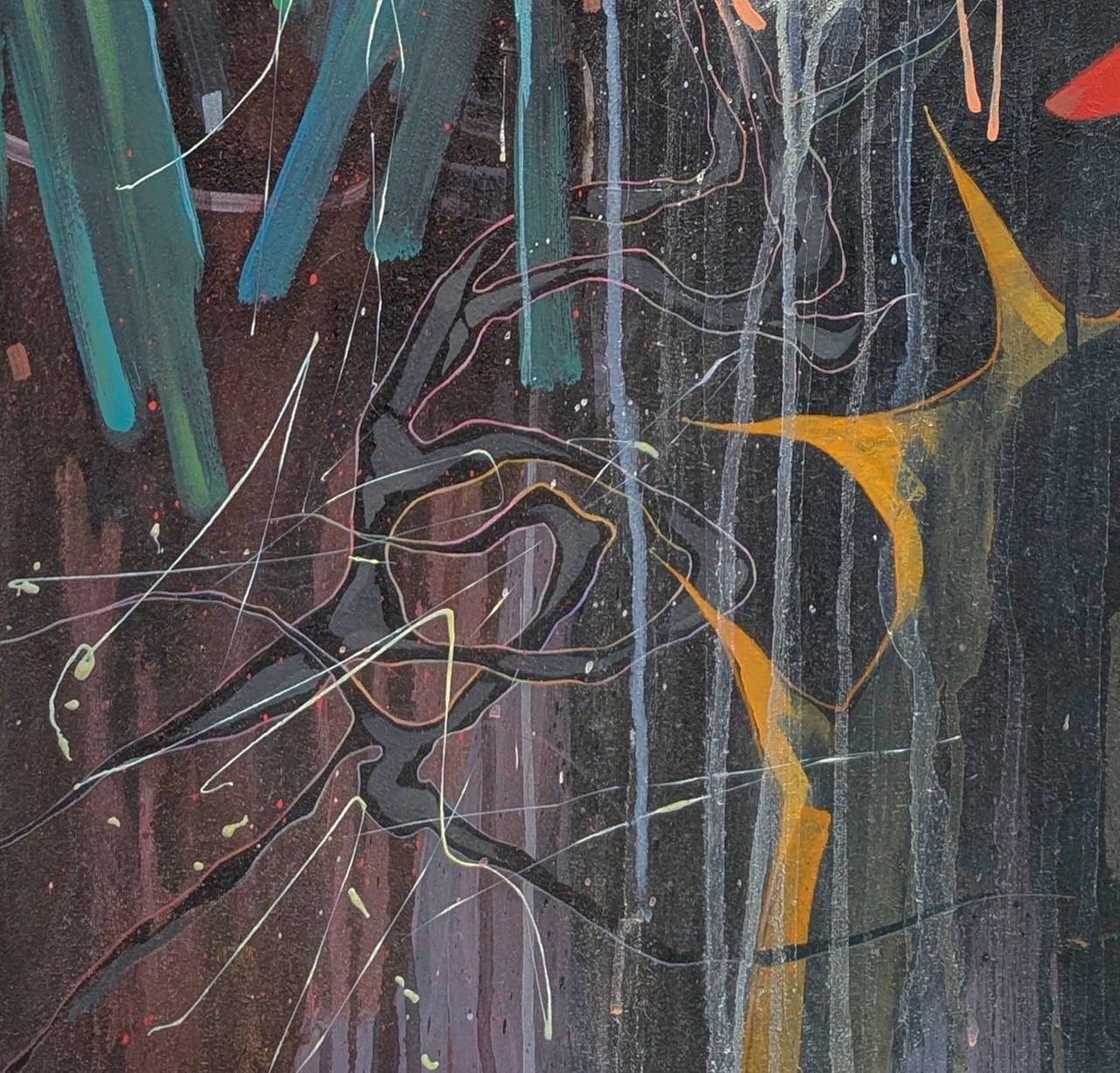 Эта работа нарисована акрилом на холсте с использованием аэрозолей.