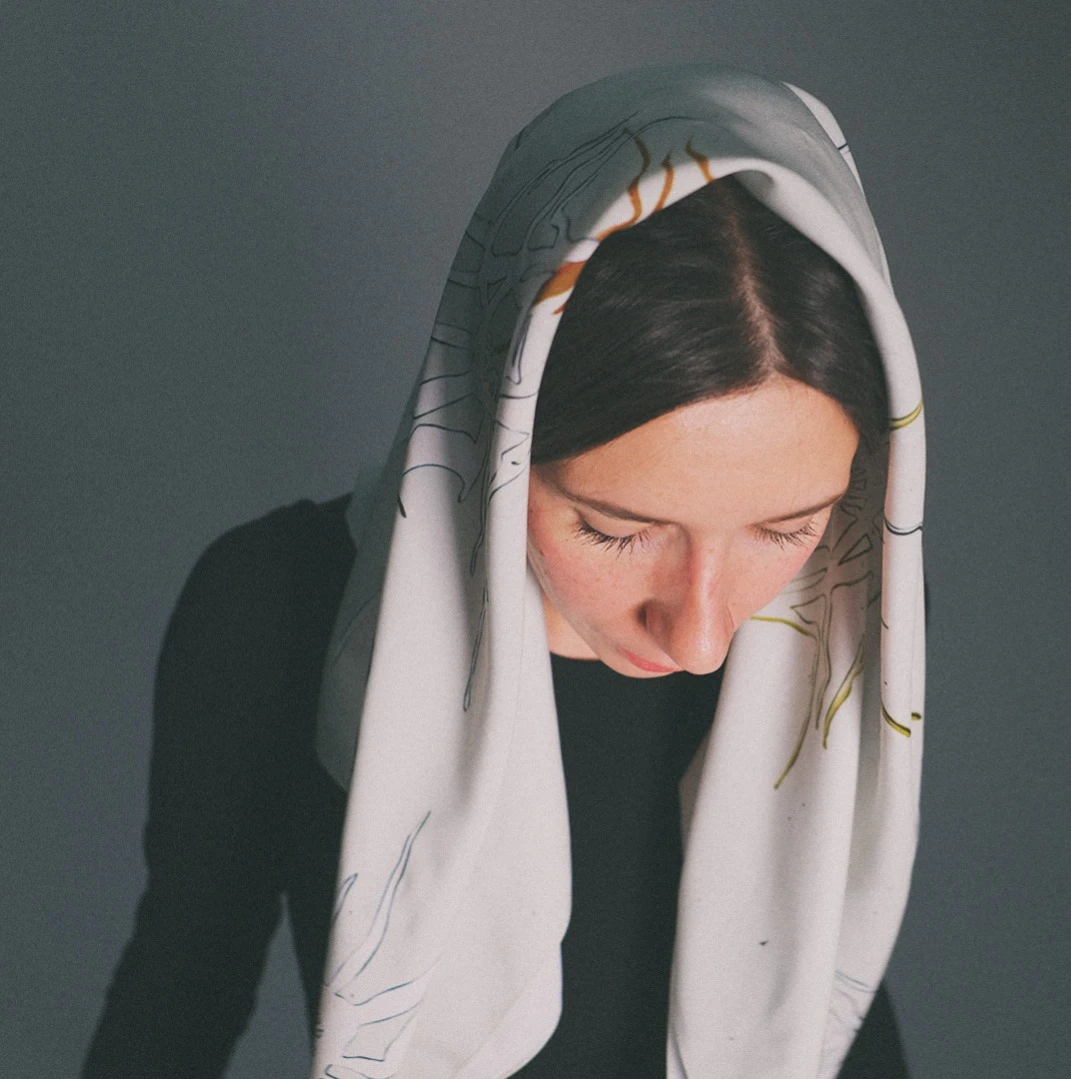 Платок ПРИЗРАК. Мокрый шёлк. Шелкография
