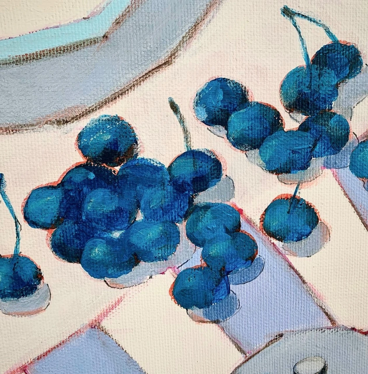 Это тонкий, почти музыкальный натюрморт, в котором есть тишина и особая цветовая память. Это не столько пикник, как ощущение от него. Картина не про фрукты и предметы, она про состояние, которое сохраняется в памяти, как момент и остров покоя.