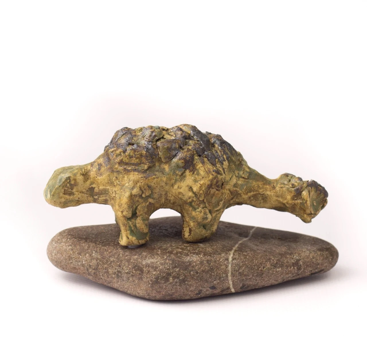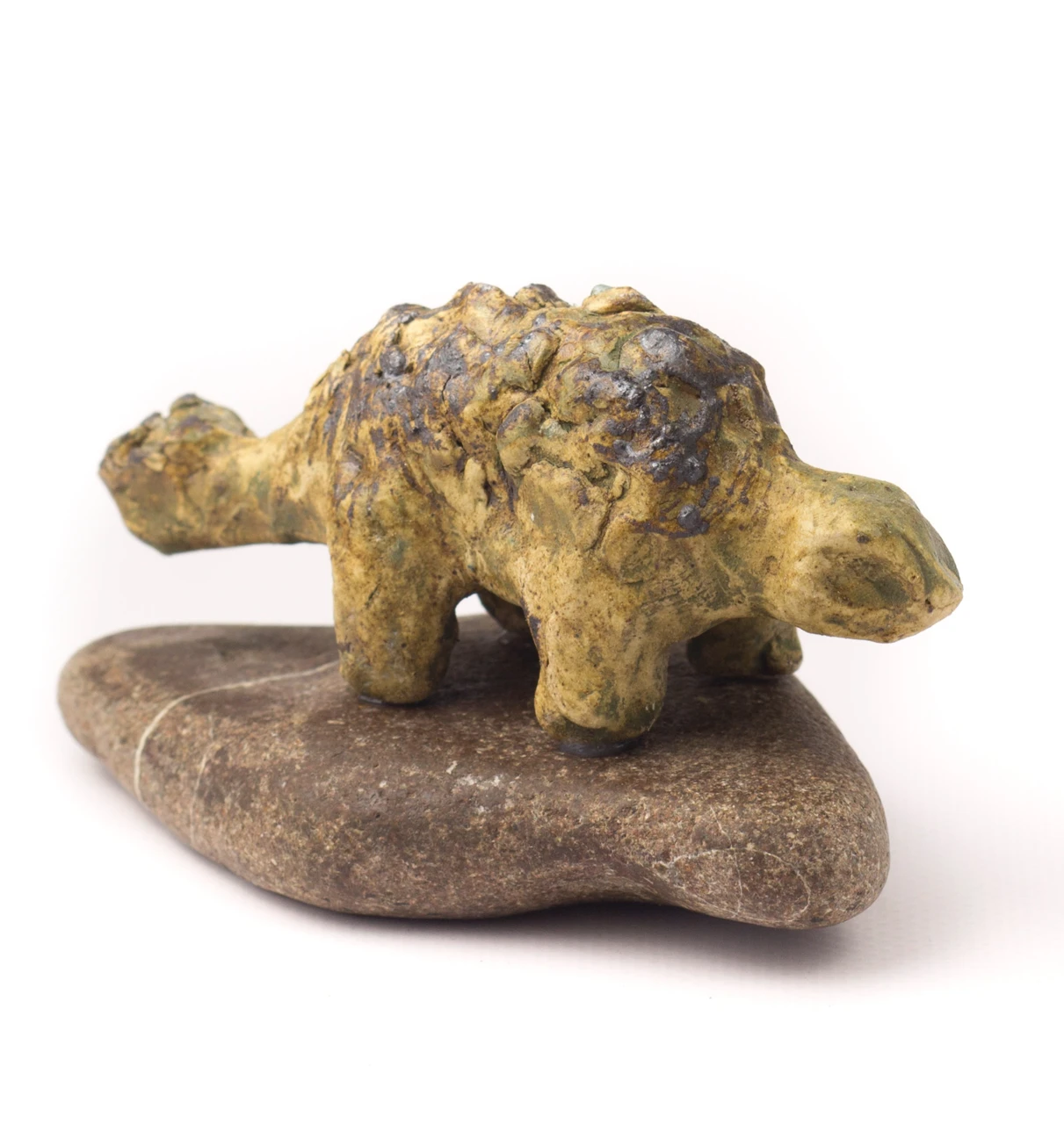 Керамический динозаврик, стоящий на камне (работа надежно приклеена к основанию). Ручная лепка, уникальная работа.