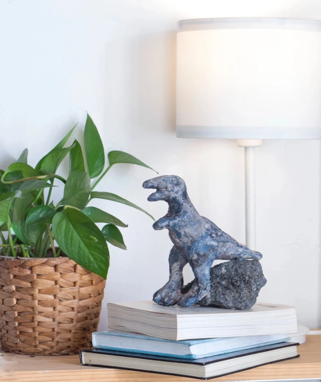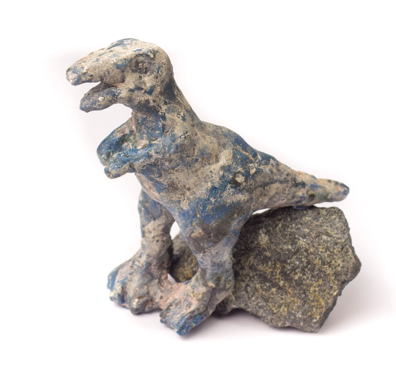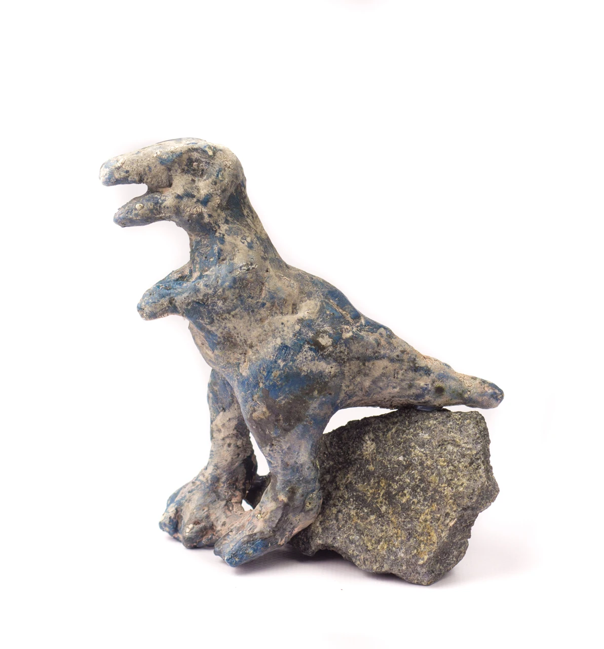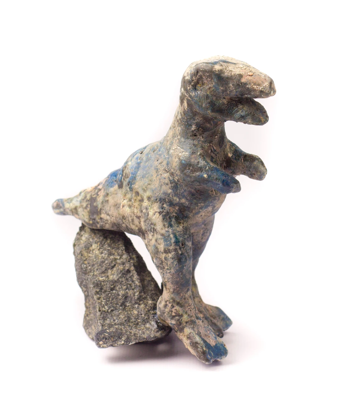 Керамический динозаврик, стоящий на камне (работа надежно приклеена к основанию). Ручная лепка, уникальная работа.