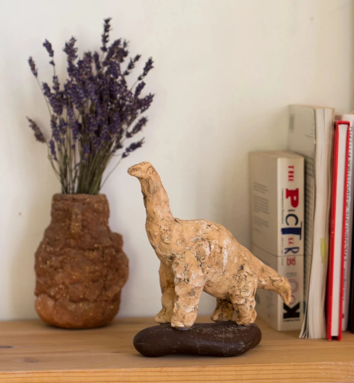 Керамический динозаврик, стоящий на камне (работа надежно приклеена к основанию). Ручная лепка, уникальная работа.