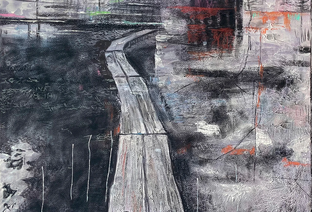 В серии «Заброшенные корабли» я обращаюсь к теме памяти, забвения и разрушения. Я работаю на стыке графики и живописи, используя уголь, акрил, темперу, сочетая их с фактурными слоями, создающими ощущение размытости и зыбкости воспоминаний. Линии в моих работах напоминают сети или трещины. Они символизируют следы прошлого и связи между пространством, историей и человеком.