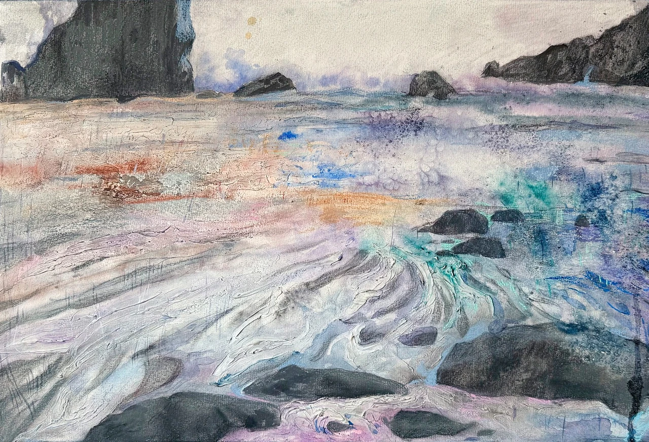 В серии «Заброшенные корабли» я обращаюсь к теме памяти, забвения и разрушения. Я работаю на стыке графики и живописи, используя уголь, акрил, темперу, сочетая их с фактурными слоями, создающими ощущение размытости и зыбкости воспоминаний. Линии в моих работах напоминают сети или трещины. Они символизируют следы прошлого и связи между пространством, историей и человеком.