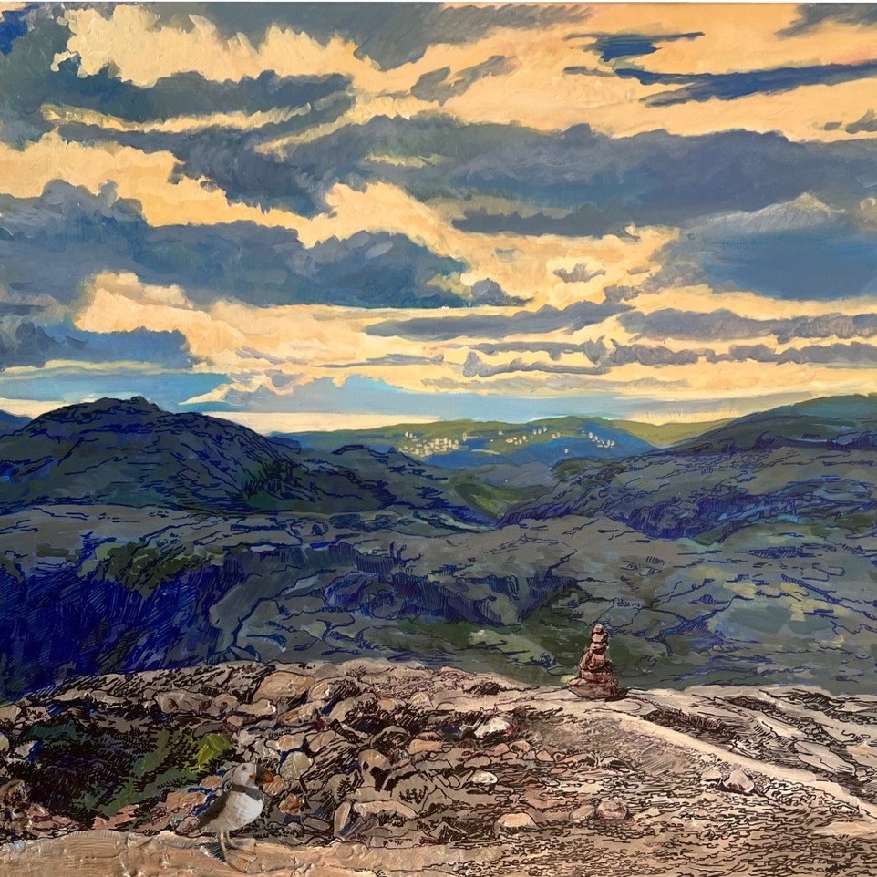 Работа написана в предзакатное время акриловой краской с деталировкой акриловым маркером. Здесь столкнулись мир многовековых камней и растений тундры и мгновенно меняющиеся цвета и формы облаков. Серебряный акрил дает металлический блеск, имитирующий игру света на камнях. Акриловые маркеры использованы для графичной прорисовки деталей и для создания эффекта гравюры. Минималистичный пейзаж, где камень и свет становятся символами вневременной природы Арктики, сочетает живописную работу и графическую точность.