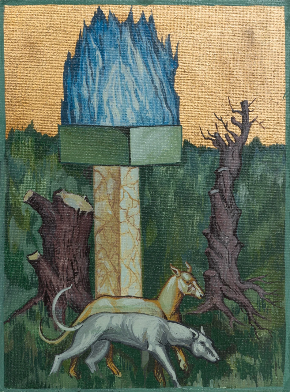 Антон получил иконописное образование, где практиковал копирование музейных образцов икон и фресок, погружаясь в средневековую оптику. Антон видит параллели между предметом своего обучения, практиками модернизма, позднесоветского авангарда и визуальностью современного интерфейса, раскрывая эти пересечения в своей художественной практике.