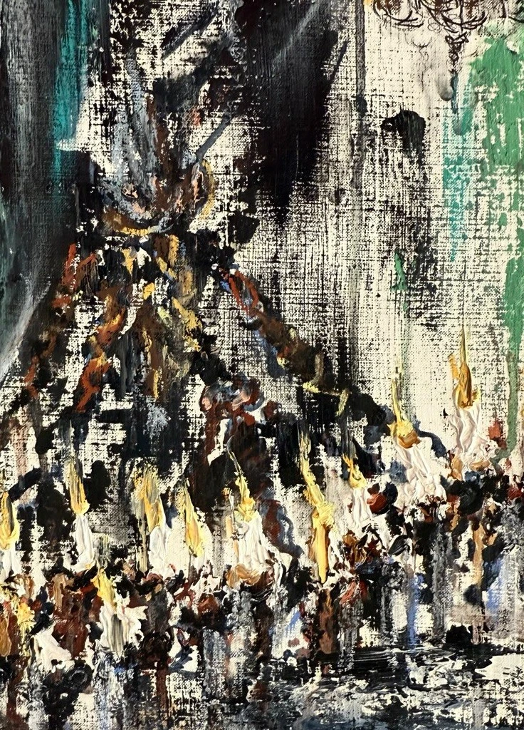 Это эскизы к большим картинам, которые можно увидеть в разных сериях. Но несмотря на малый формат, я использую ту же технику, работаю на бумаге маслом, масляной пастелью и линером. В графических работах я передаю основные смыслы, с которыми работаю. Я говорю о сложности личного выбора, о различных формах восприятия действительности, о внутренней силе. Во всех работах можно увидеть характерные черты моей живописи - пышные интерьеры, зажженные свечи, потечность и объём текстур.