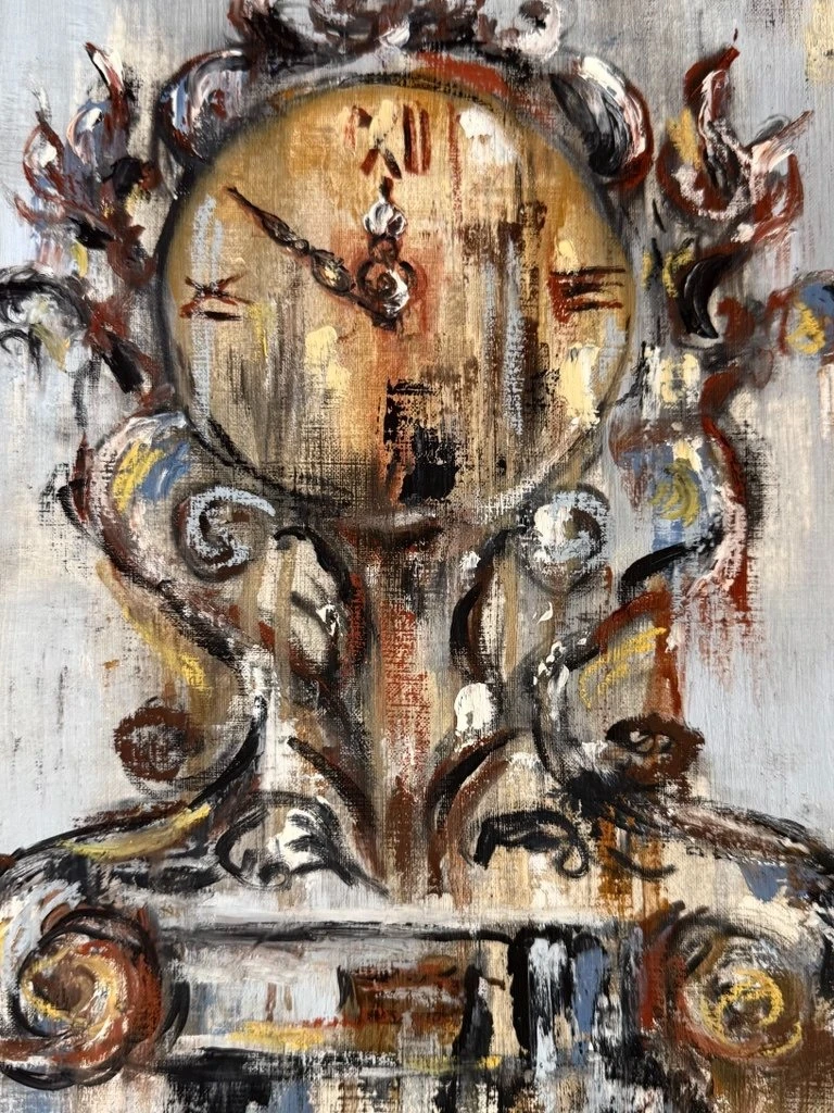 Это эскизы к большим картинам, которые можно увидеть в разных сериях. Но несмотря на малый формат, я использую ту же технику, работаю на бумаге маслом, масляной пастелью и линером. В графических работах я передаю основные смыслы, с которыми работаю. Я говорю о сложности личного выбора, о различных формах восприятия действительности, о внутренней силе. Во всех работах можно увидеть характерные черты моей живописи - пышные интерьеры, зажженные свечи, потечность и объём текстур.