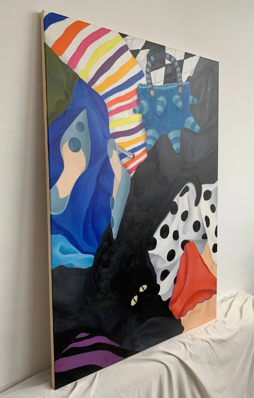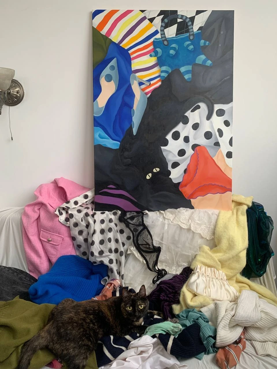 Моя двуспальная кровать — уютный остров в море быта. На одной её стороне укрываюсь я в мягких снах и мыслях, а на другой медленно вершится гора вещей, словно заброшенный город, где каждый предмет-отдельная история. Эти беспорядочные вершины создают таинственный пейзаж, в котором живет моя кошка. Она будто искатель приключений, выбирающая самое загадочное и интересное место для отдыха. Иногда она растворяется среди этого бардака, сливаясь с тканями и предметами так мастерски, что найти её становится настоящим приключением.