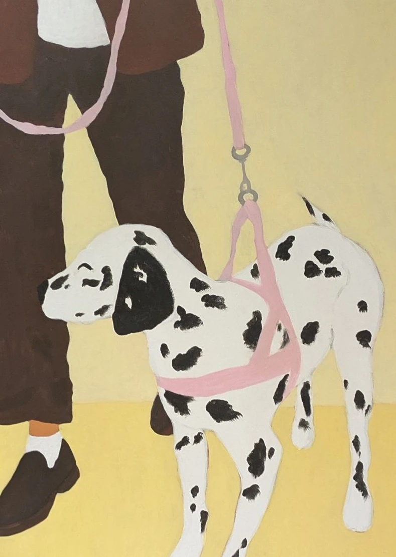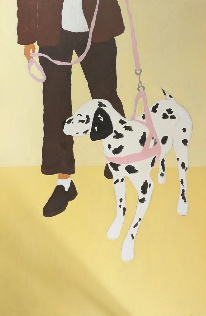 На картина "Идем гулять" изображена девушка с далматинцем.