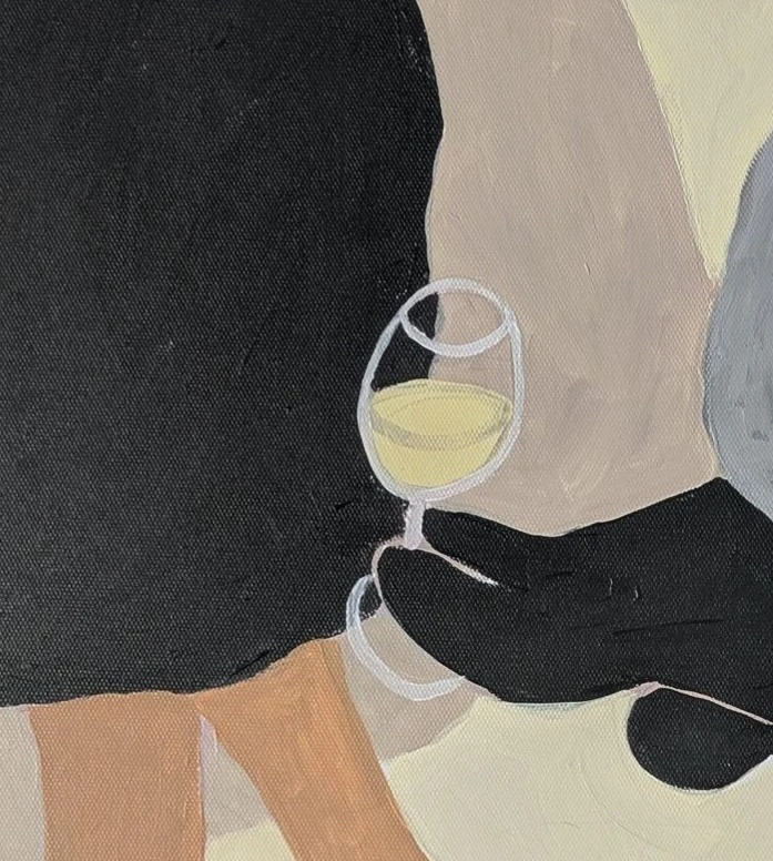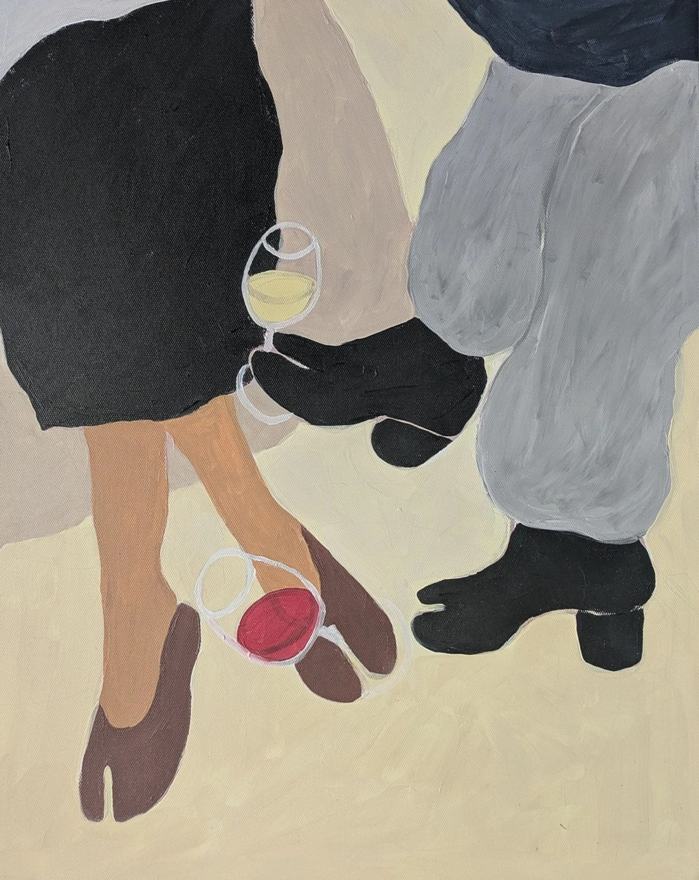 На картине "Tabi girls" изображены девушки в таби с бокалами вина.
