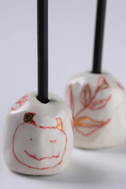 Пара подсвечников под тонкую свечку с наивными рисунками в карандашной технике и позолотой